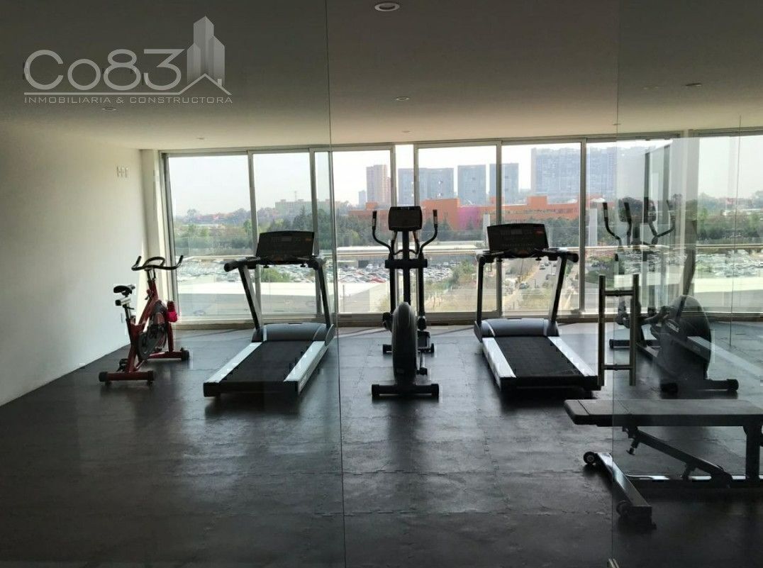 The apartment is exterior and is located in the Qbicoo Santa Fe Tower, it is on the seventeenth level, has two bedrooms, two full bathrooms, and a parking space, where cars are parked in battery.
