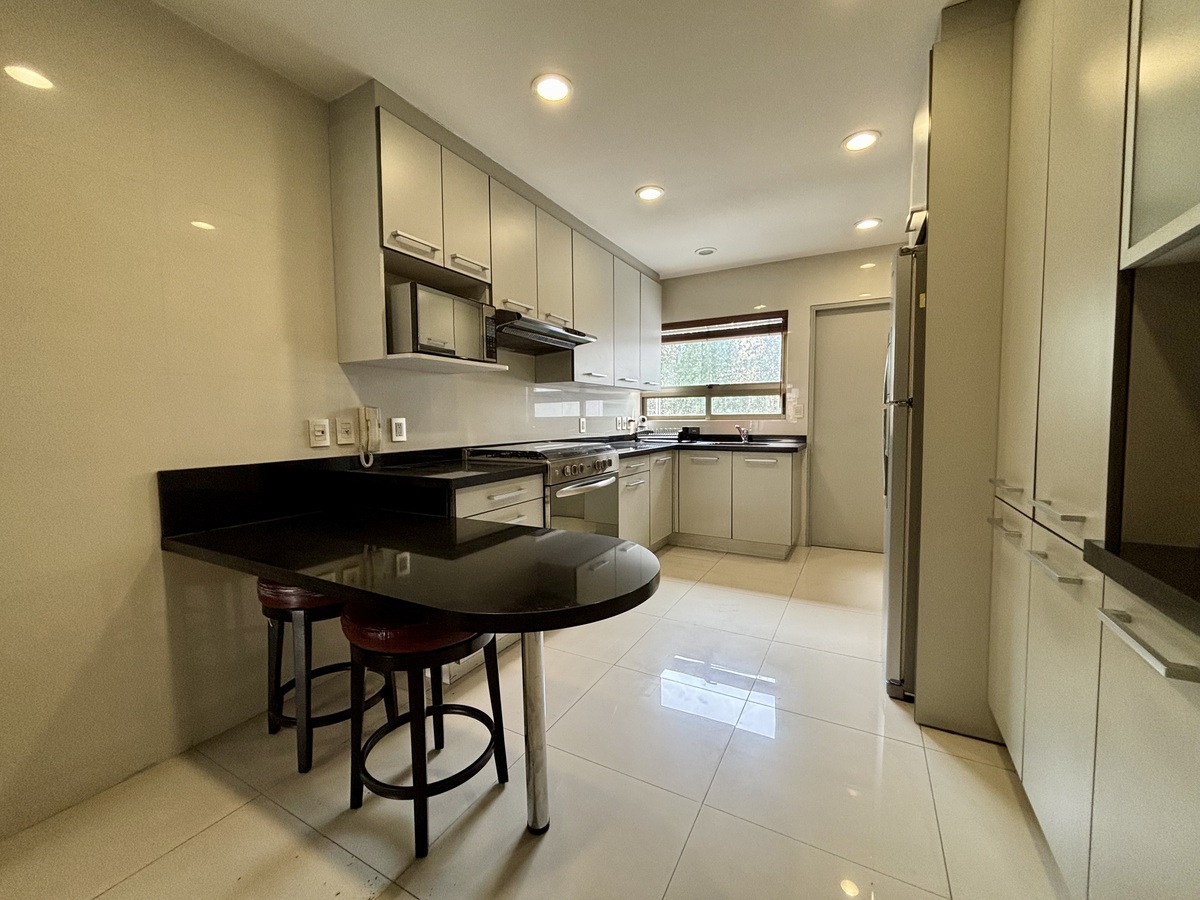 Cocina muy amplia con desayunador, cubierta de granito. Cuenta con cuarto de servicio y área de lavado.