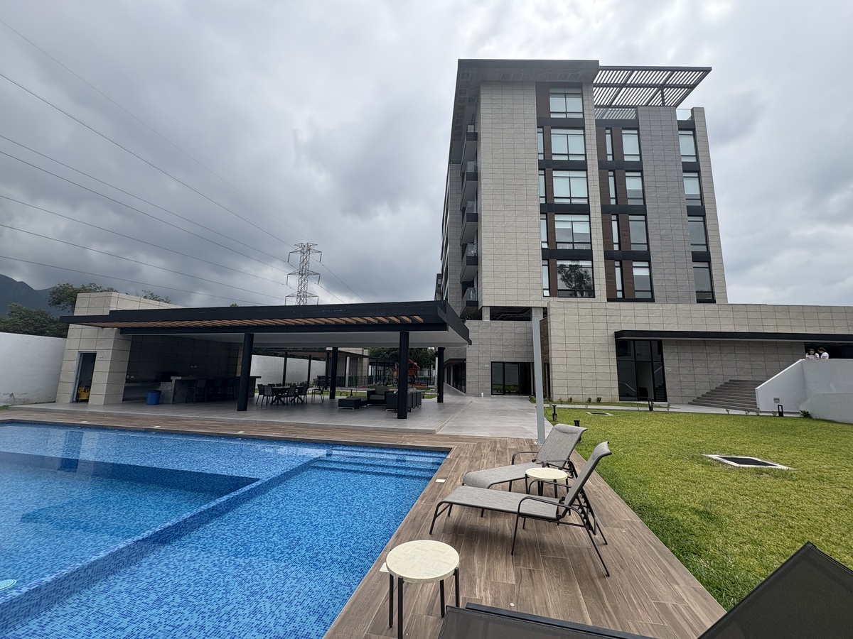Brand New Apartment for Sale located in an exclusive and new complex on Carretera Nacional. 5-story building with 6 apartments per floor. It features beautiful common areas with views of the mountains that inspire peace and tranquility. Pool, Paddle Court, Children's play area, Event Hall, Gym, Adult game room. Each apartment includes its storage room. 84 sqm apartment with 2 exclusive parking spaces and storage room. 2 bedrooms each with its own bathroom and closet, guest bathroom, living room, dining room, Kitchen equipped with island hood, refrigerator and freezer, Electronic Grill, Electronic Oven, Microwave all by Whirlpool. It also includes an electric boiler. 3 TRANE mini-splits for heating and cooling. With Laundry room with washer and dryer.Estrena Departamento en Venta ubicado en exclusivo y nuevo complejo en Carretera Nacional. Edificio de 5 niveles con 6 departamentos por piso. Cuenta con hermosas areas comunes con vistas a la sierra que inspiran paz y tranquilidad. Alberca, Cancha de Pádel, Área de juegos para niños, Salón de Eventos, Gimnasio, Sala de juegos para adultos. Cada departamento incluye su bodega. Departamento de 84mts con 2cajones de estacionamiento exclusivos y Bodega. 2 recamaras cada una con su baño y closet, baño de visitas, sala, comedor, Cocina equipada con Campana de isla, refrigerador y congelador, Parrilla Electrónica, Horno Electrónico, Microondas todo marca Whirlpool. También incluye Boiler eléctrico. 3minisplits marca TRANE Frío Calor. Con Lavanderia lavadora y secadora.