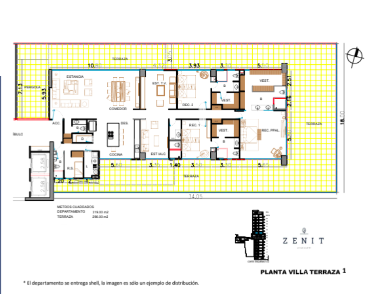 Option of two large bedrooms, three bedrooms with a large family space, four bedrooms, library, bar, wine cellar, office, a large social space, everything you need can be integrated into your very particular interior design, as well as a terrace that offers privileged views towards