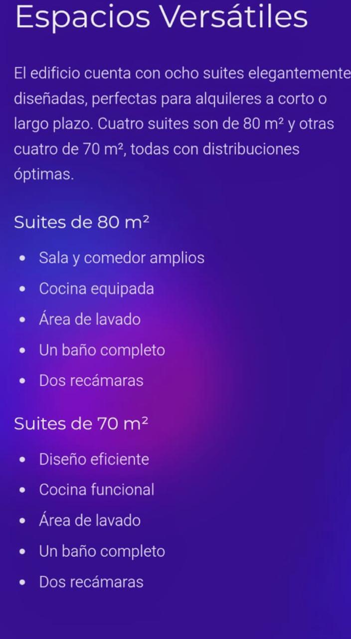 con 2 recamaras ,1 baño completo, sala-comedor, cocina equipada ,1 Pent-house de 120 m2 de 1 recamara ,1 baño completo ,amplia terraza privada. Cada departamento ofrece espacios bien distribuidos con buena iluminación y ventilación natural.