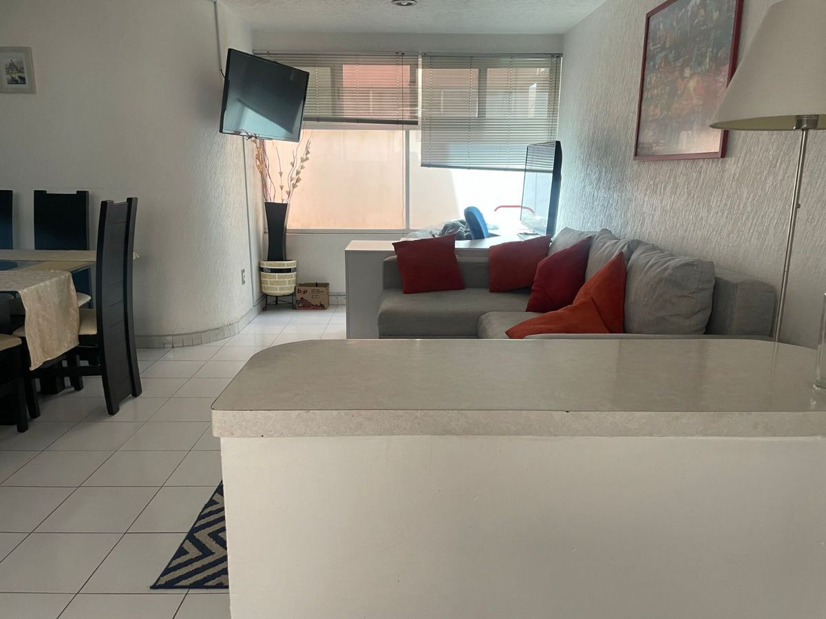 En cuarto piso, con elevador, cuenta con 2 recamaras y 2 baños completos, cocina abierta con barra y agradable distribución de sala y comedor.