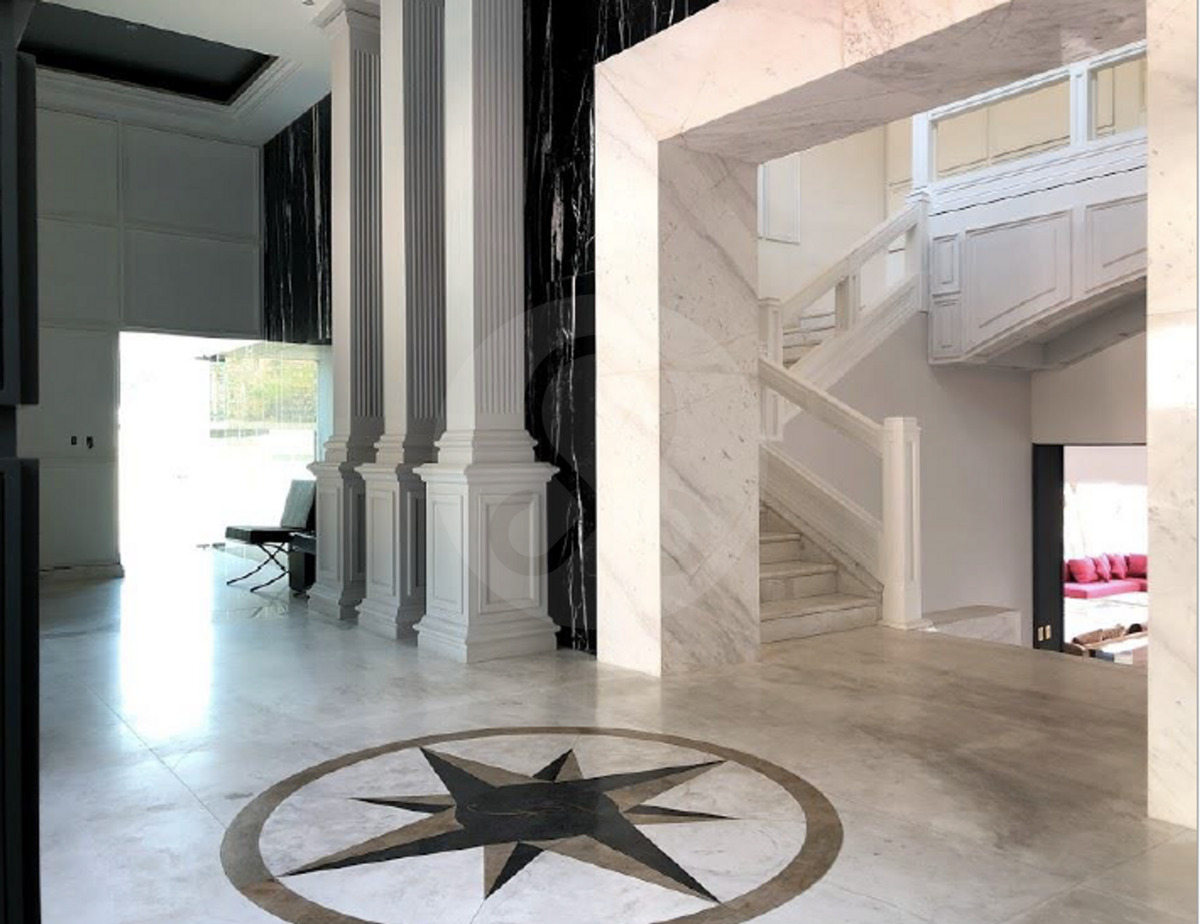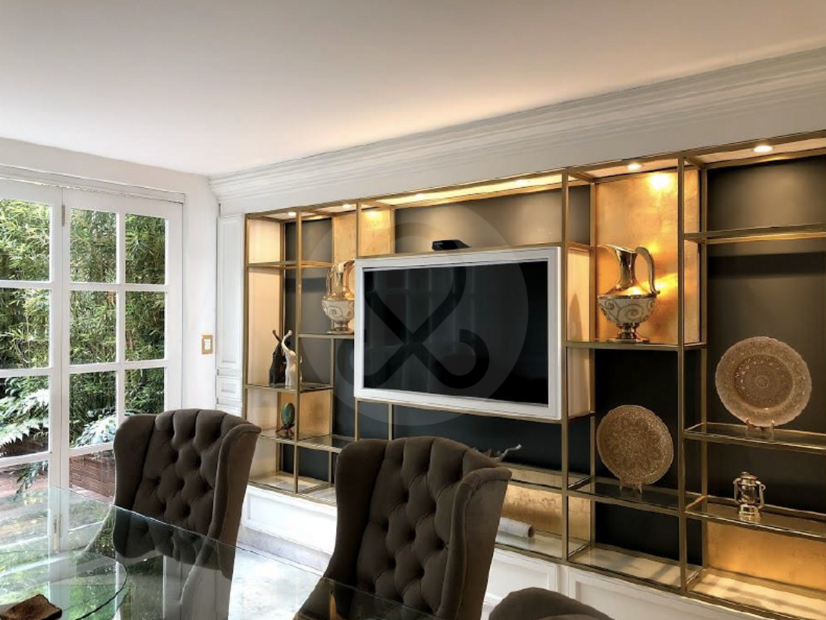 Game room with two bathrooms, projection room, bar. Pool with two bathrooms, spa, sewing area, 3 service rooms, 200 m garden (can be expanded). Car display area and independent apartment in white work on two levels of 400 m2 with gym, two bathrooms, and guest suite. Party room for 200 people with stage, kitchenette, and two half baths. Storage room. 8 covered parking spaces.[CAR-616]