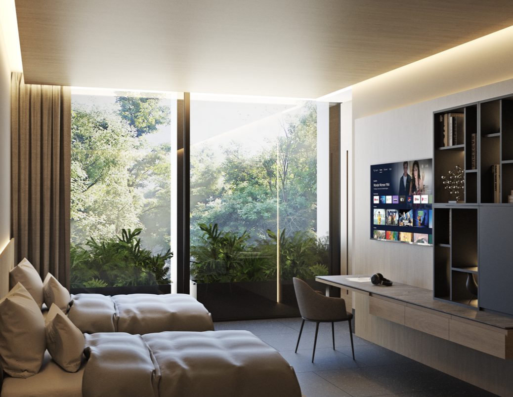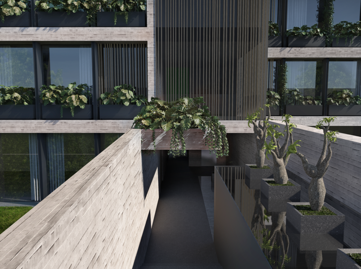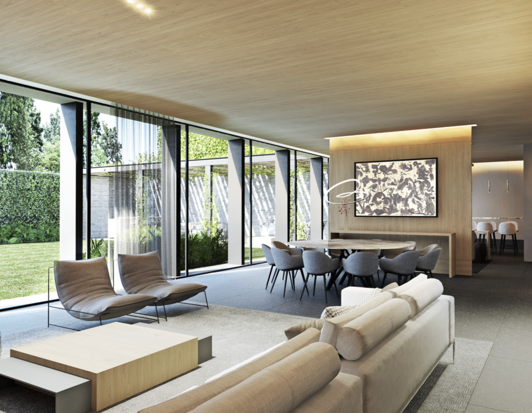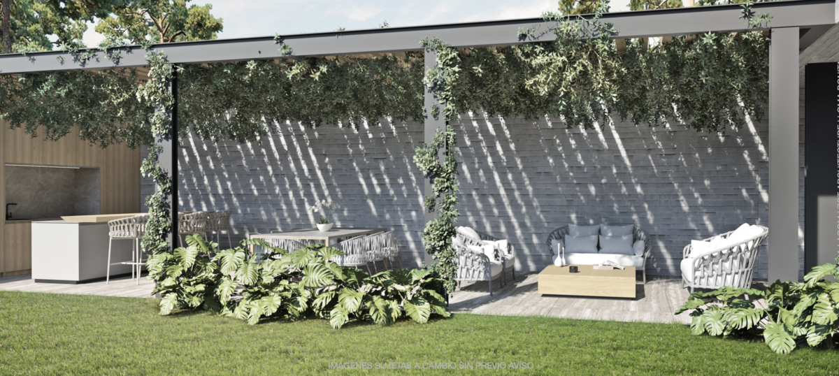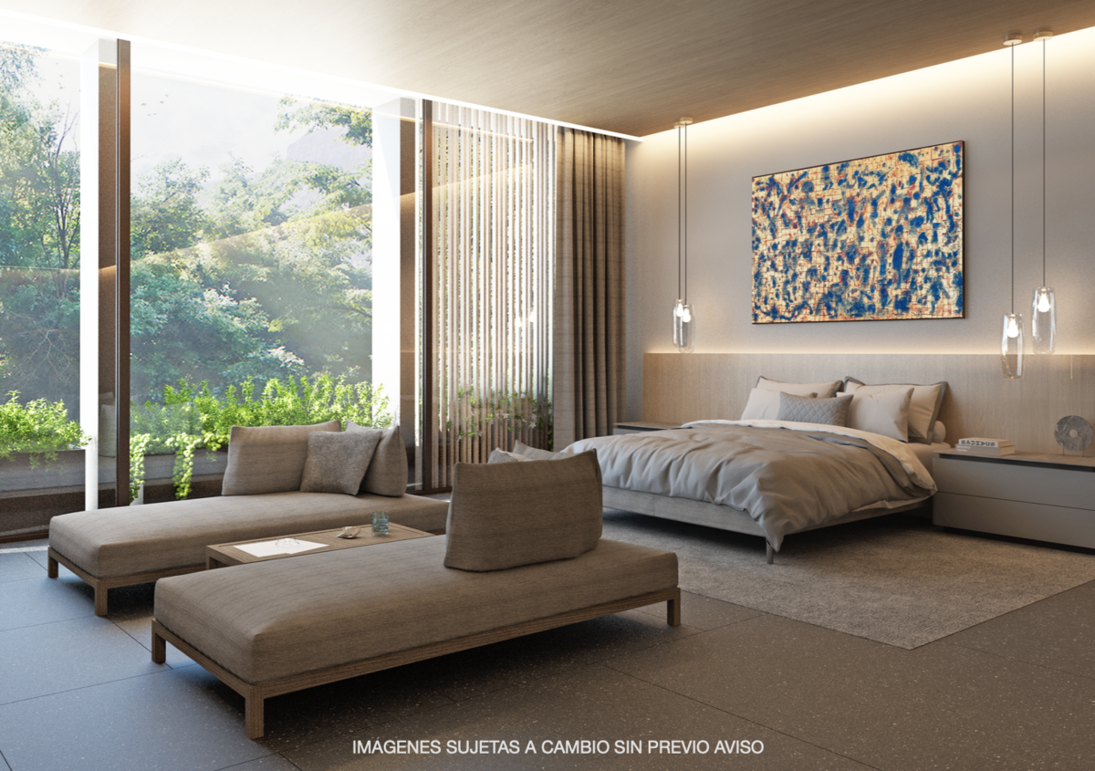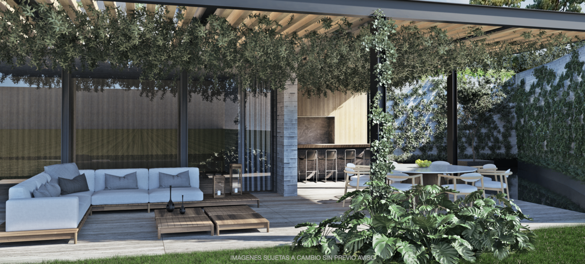 El diseño arquitectónico contemporáneo y elegante lleno de espacios cubiertos de luz y vegetación retoma las raíces de la naturaleza como inspiración en los detalles de madera, acero, concreto y áreas verdes.