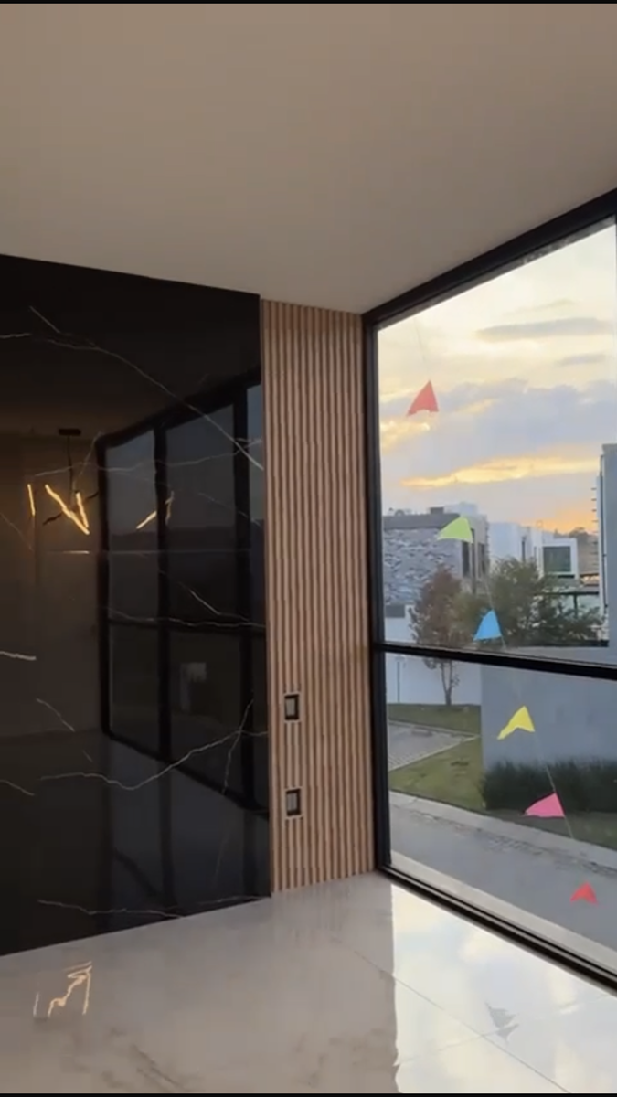 NOTA: Madera en encino americano, iluminación indirecta, candiles modernos, preparaciones para A/A, pisos porcelanatos formato .60 X 1.20, cisterna 5000lts.
