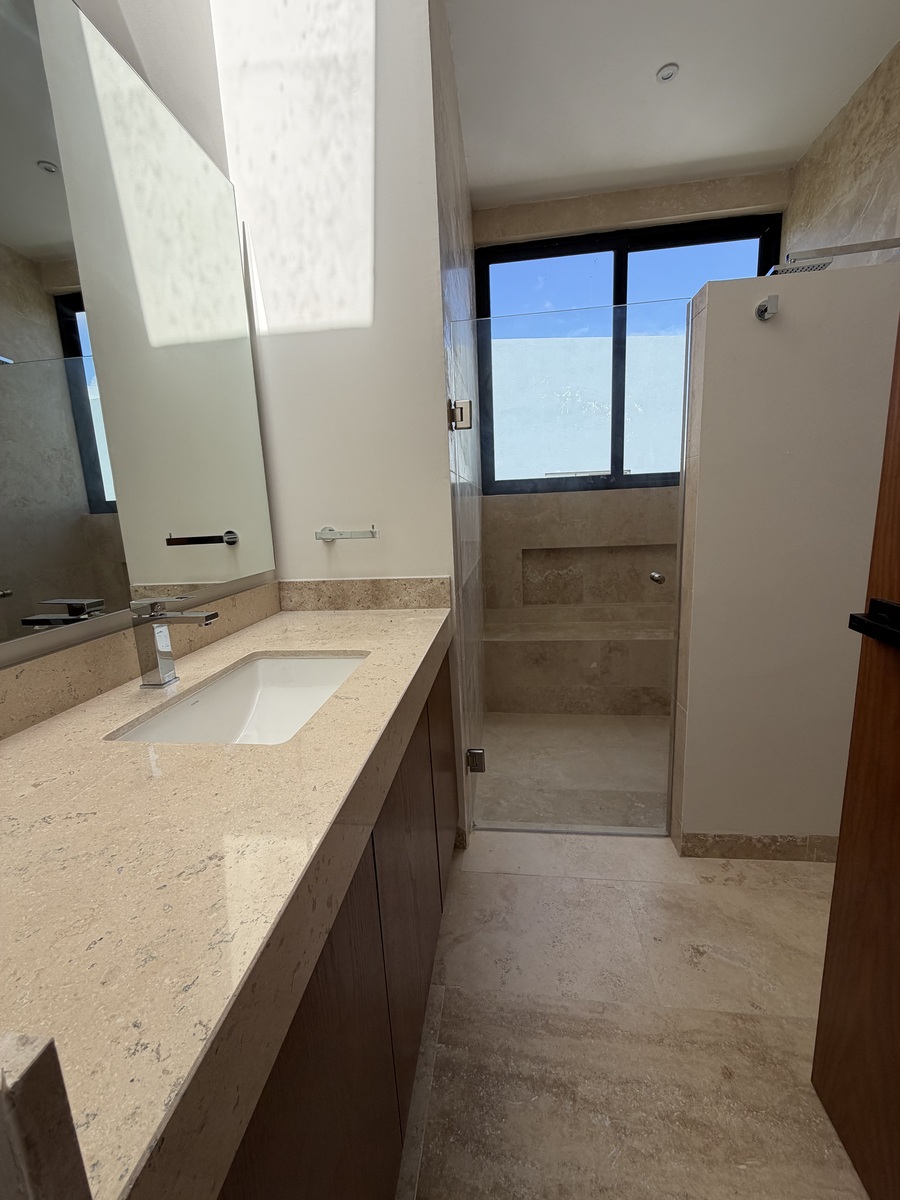 Centralized air conditioning system throughout the social area and the master bedroom.Hermosa Residencia a estrenar ubicada en la privada Kutz cuenta con un parque central , cancha de padel, juegos infantiles