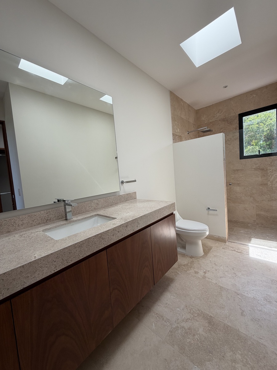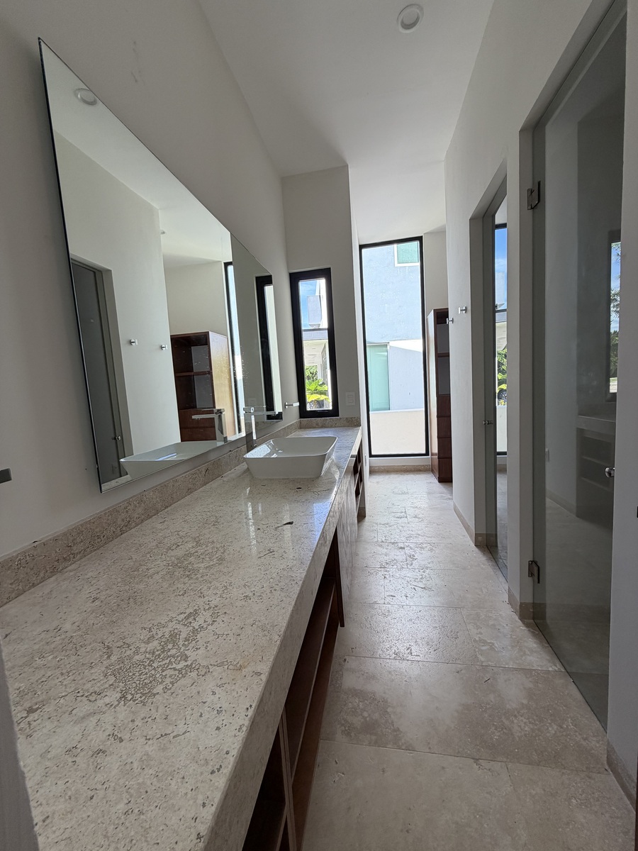 Recámara principal con clóset vestidor, baño privado y doble lavabo