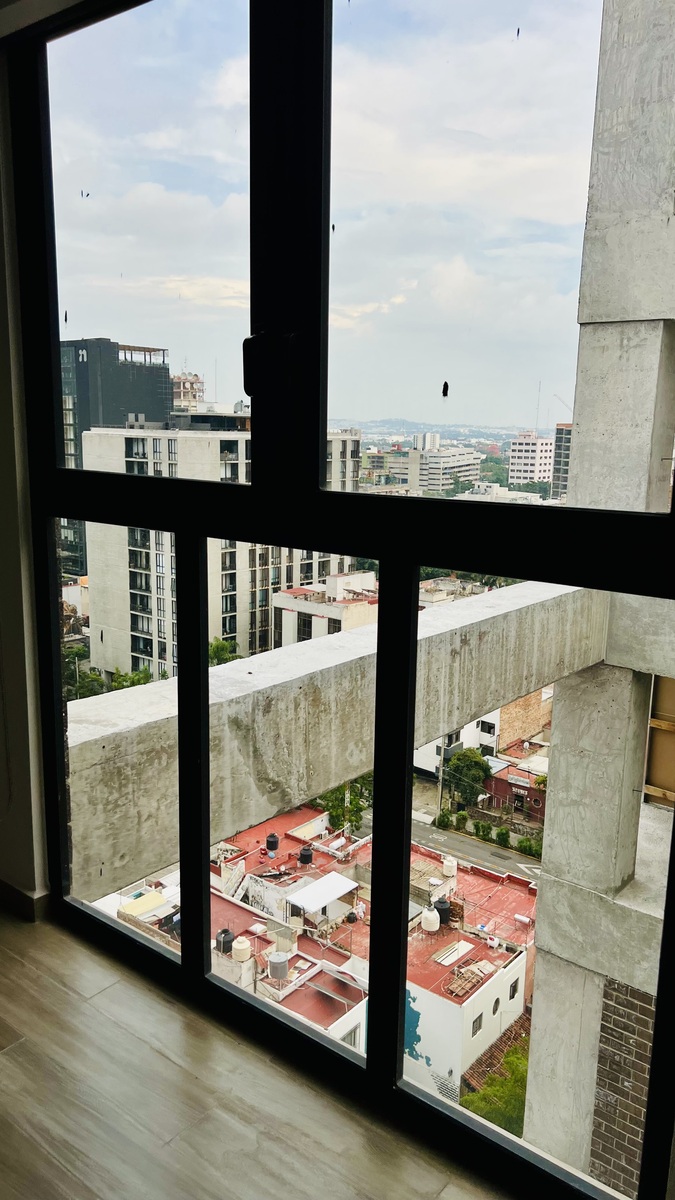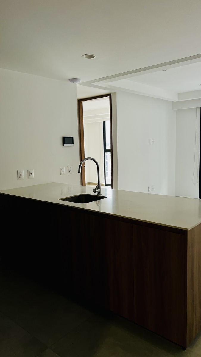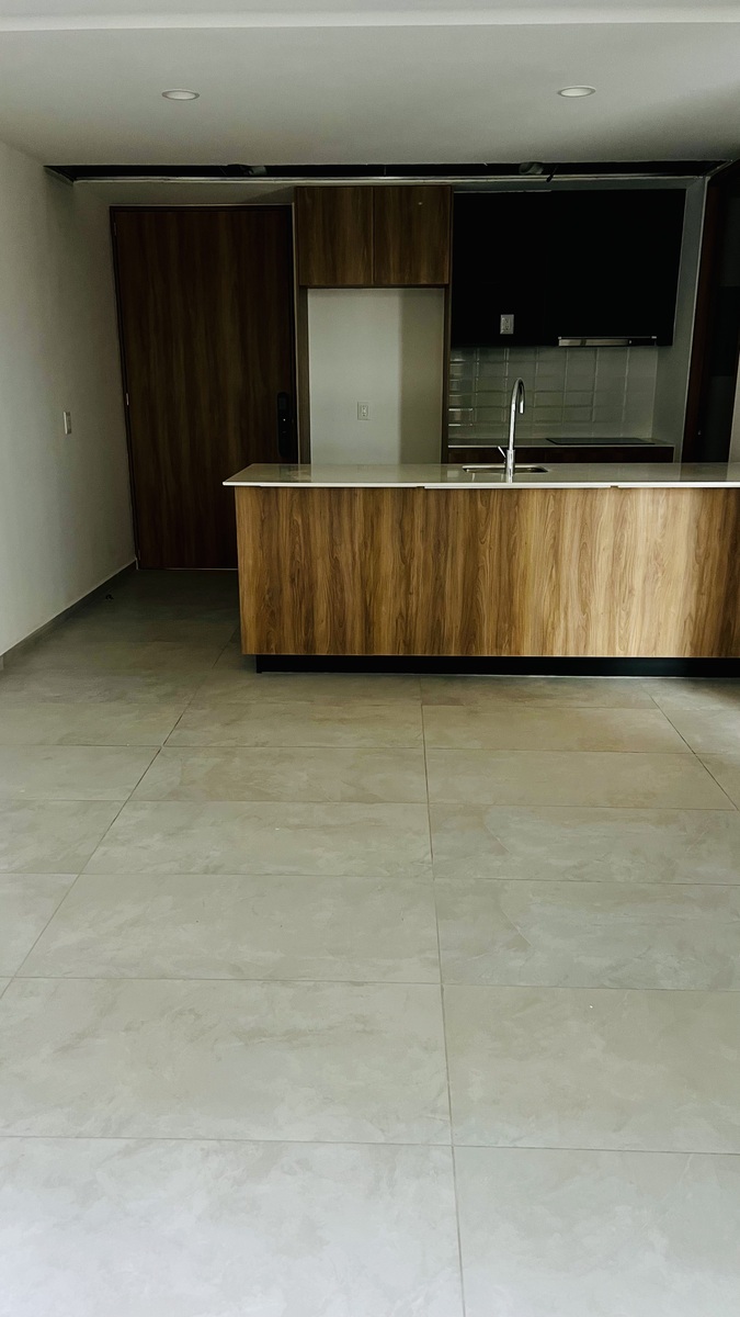 Departamento de 1 habitación 2 baños completos, cuarto de lavado, balcón en la sala cocina con barra Recámara con vestidor y baño completo y baño de vicitas