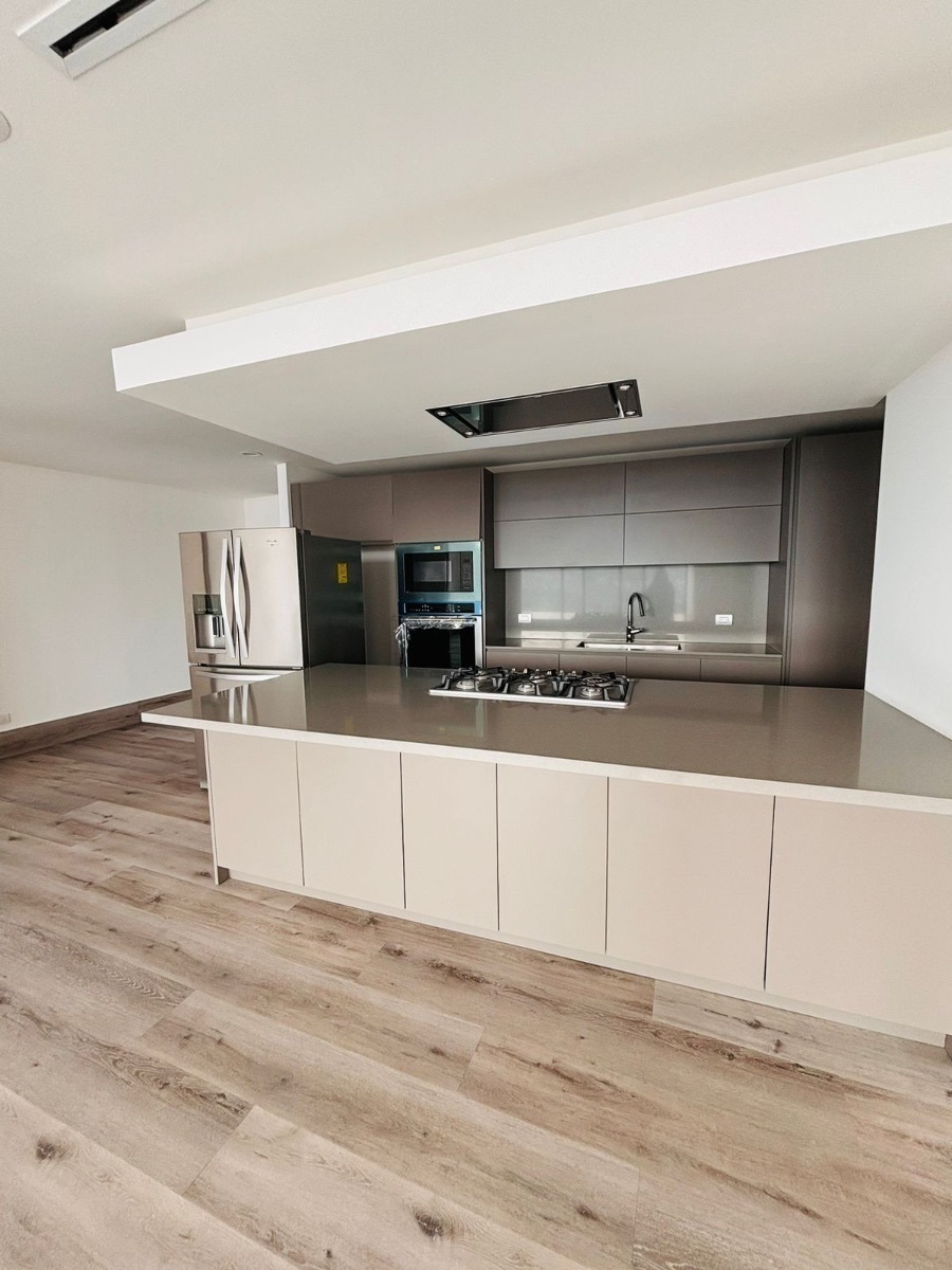 Cocina equipada full con estufa, refri, horno y campana nuevos.