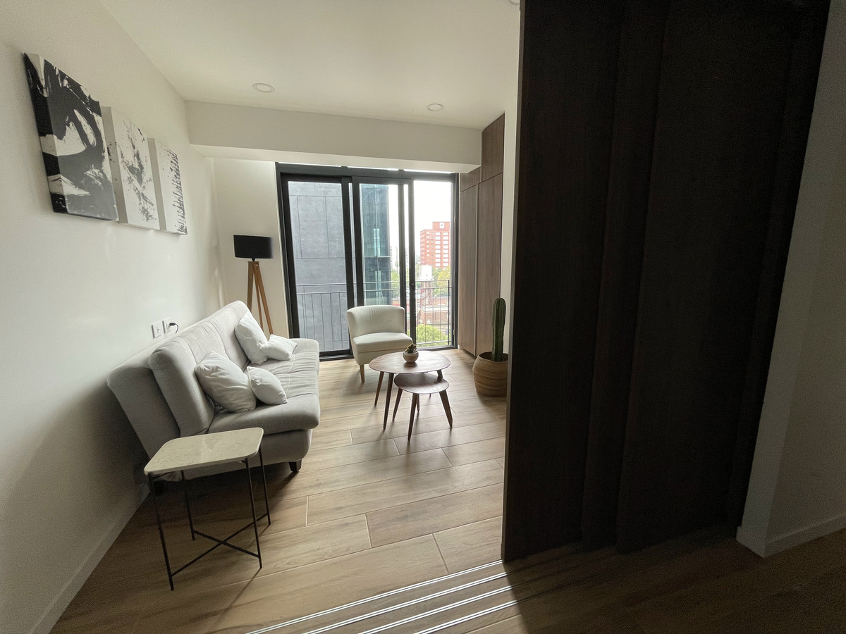 The building has amenities such as a Roof Garden, Gym, Coworking, Adult Lounge, and event hall.Departamento en renta de una recámara, cuenta con sala tipo flex (la sala tiene puerta para convertirse en una 2da recámara de visitas), tiene un estudio independiente con escritorio. Totalmente amueblado y equipado, listo para habitar. Cuenta con 1 estacionamiento.