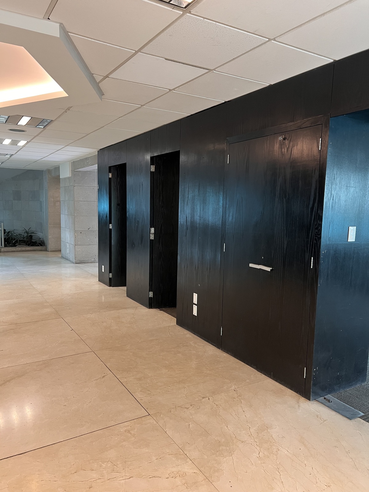 The building is distributed over three levels, each level has individual work areas and meeting rooms to accommodate groups or meeting rooms, as well as a restroom area with sanitary facilities for men and women; on the second level, there is also a private office with a full bathroom, finished with marble.