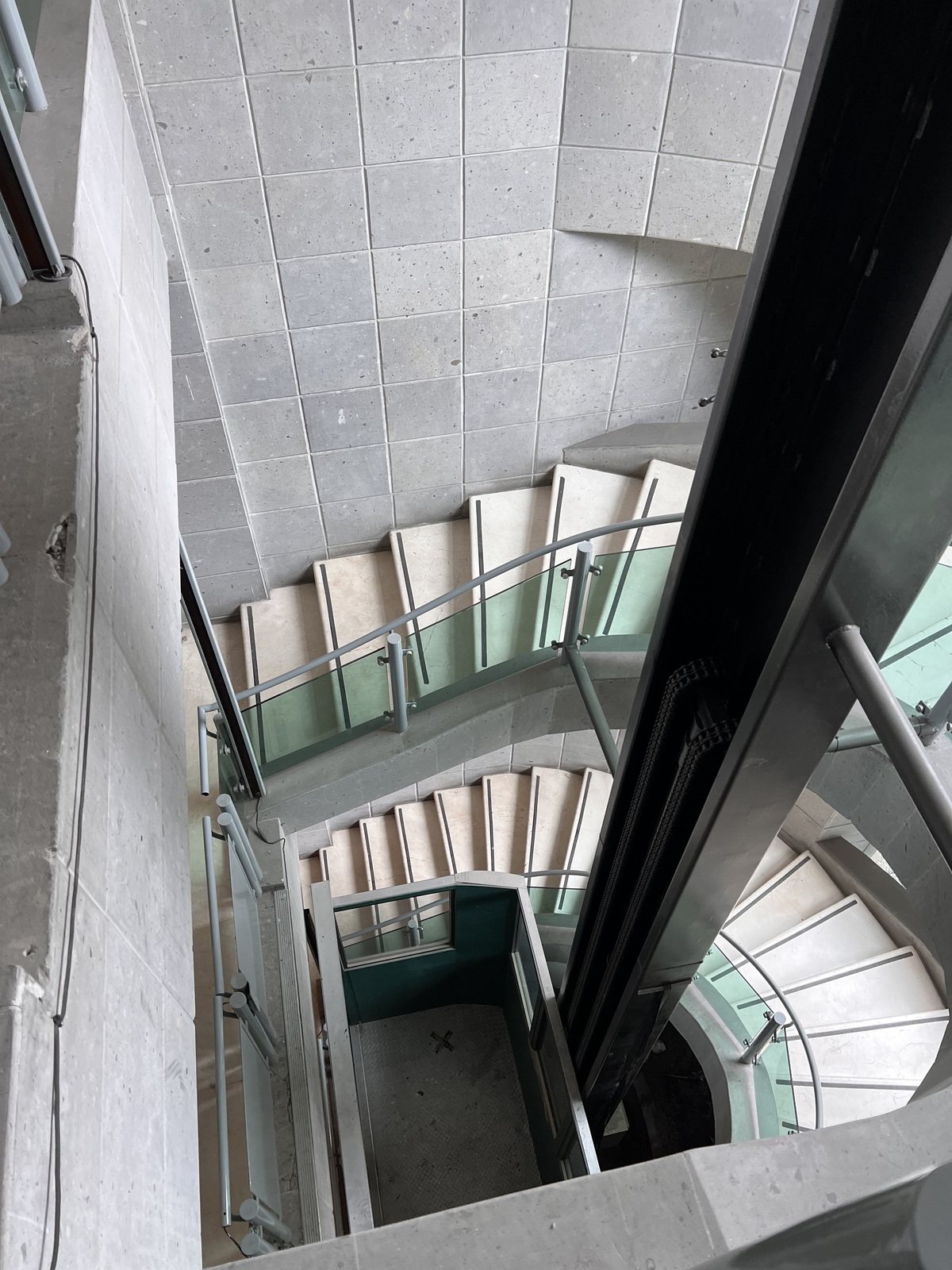 El edificio se distribuye en tres niveles, cada nivel tiene áreas de trabajo individuales y salones para adaptarse a grupos o salones de juntas , ademas de zona de baños con baterías sanitarias de hombres y de mujeres; en el segundo nivel se encuentra ademas un privado, con un baño completo, con acabados de mármol.