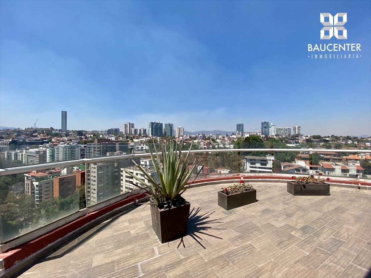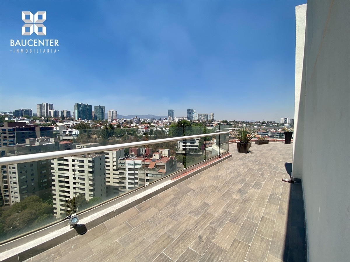 Renta o Venta de PH 470 m2 + 121 de roof garden privado, sala y comedor con vista panorámica, cocina con desayunador y alacena. Áreas de servicio y lavado con entrada independiente.