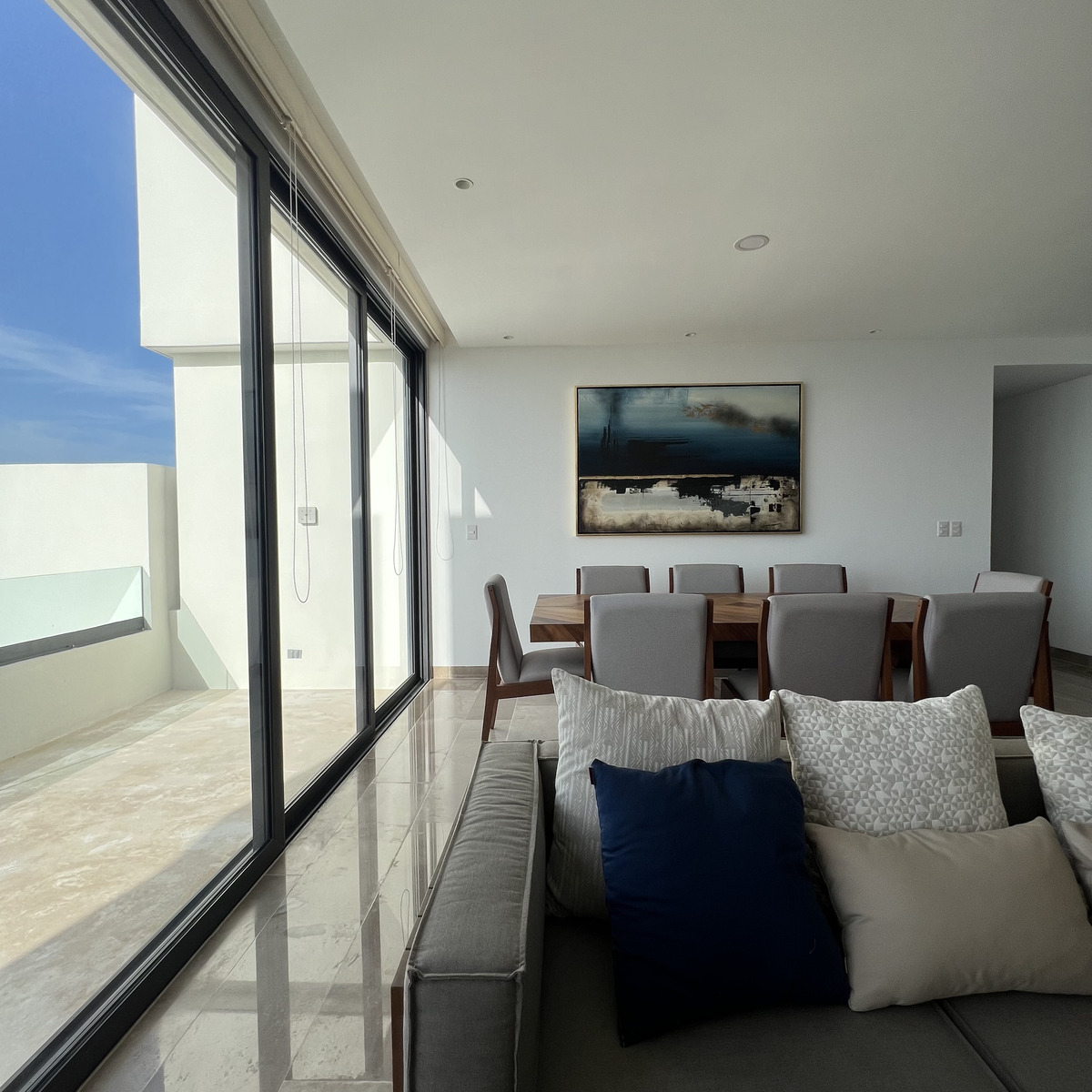 - Sala - comedor con vista al mar.
