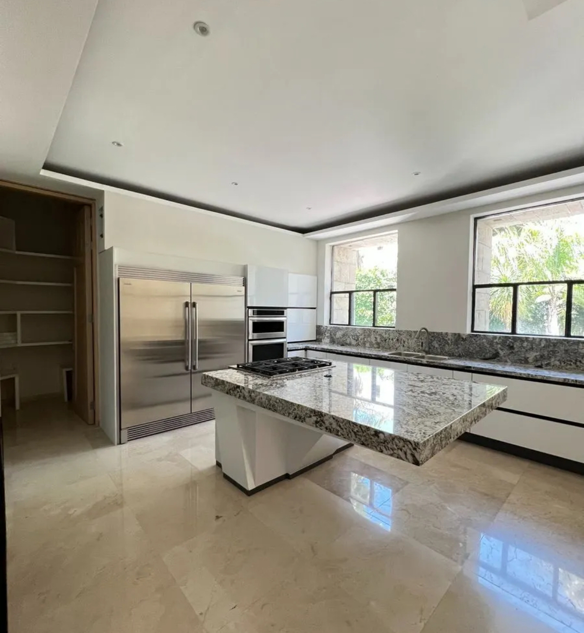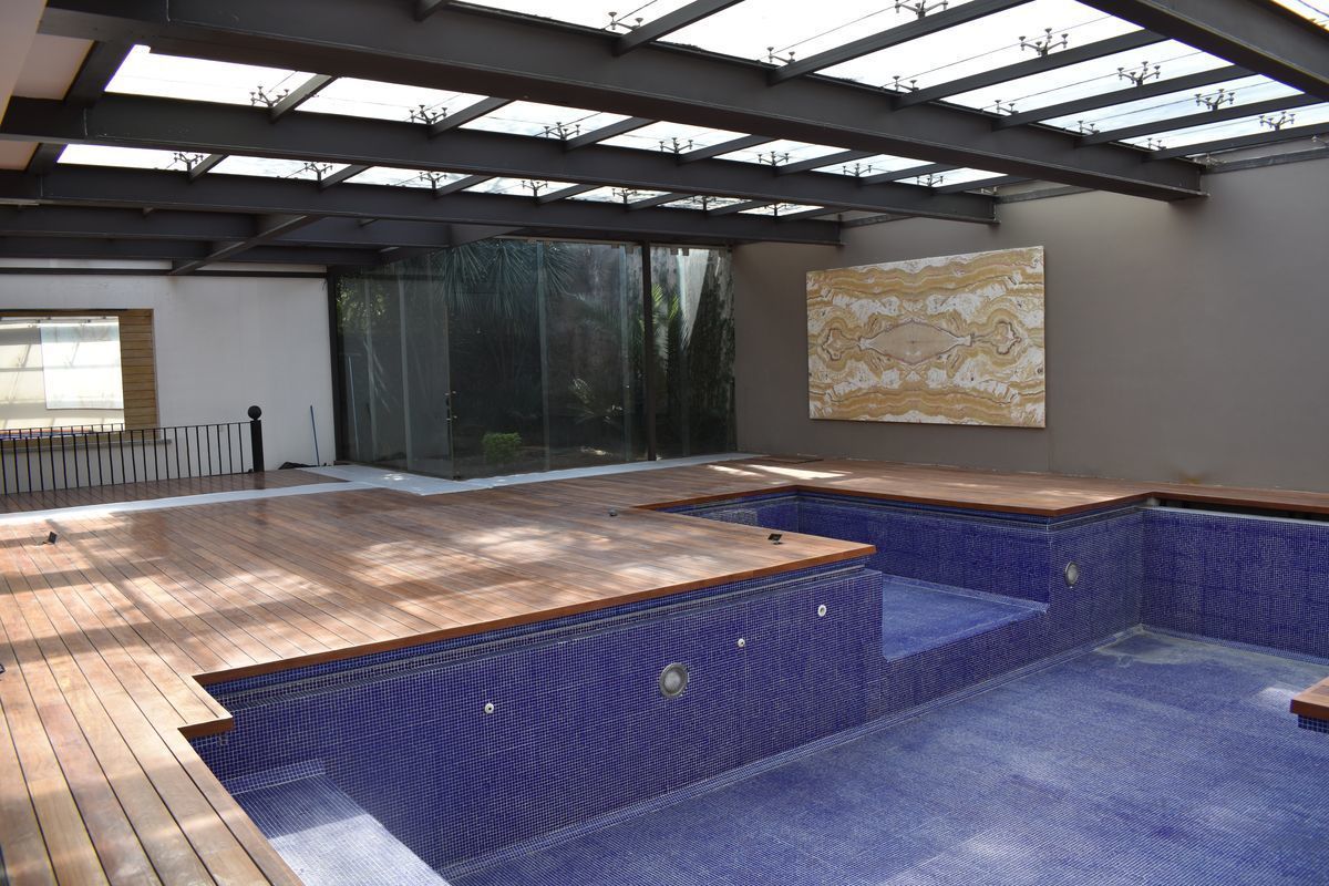 the secondary ones with their own bathroom, the house has a very good size social area, two warehouses, a service room with bathroom, parking space for 8 cars. 24 hour security.Casa en venta en exclusivo condominio de 6 casas, cuenta con estancia sala comedor de gran tamaño, con ventanales de techo a piso que comunican con la parte trasera donde se encuentra la alberca y un pequeño jardín, cocina de buen tamaño, área para desayunador con salida a una terraza, en esta misma planta una recamara con closet y baño completo, en el siguiente piso sala de T.V. y tres recamaras la principal con enorme vestidor y baño completo