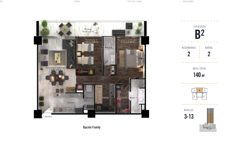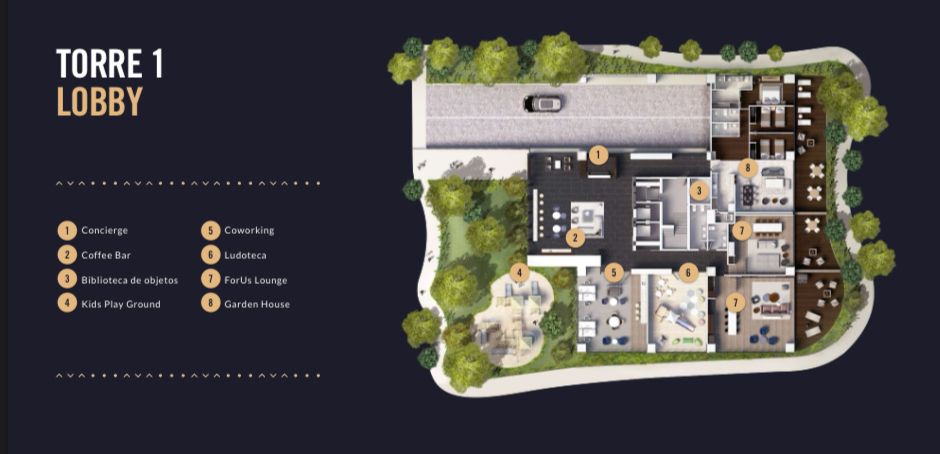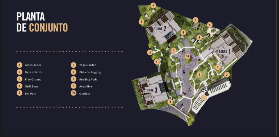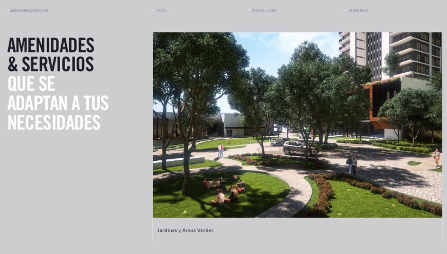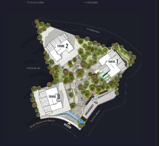 El desarrollo cuenta aproximadamente con 12,000m2 de terreno y un área de 6,500m2 de áreas verdes, y son de 252 departamentos en total en 3 torres. Torre 1. 80 departamentos . Torre 2. 94 departamentos (se entrega aprox 30 meses). Torre 3. 90 departamentos (no ha salido a la venta) Áreas comunes exteriores: Jardines y Áreas Verdes, Grill Zone, Outdoor Gym, Yoga Garden, Kids Playgroud, Pet Park con Guardería, Reading Pods, Pista de Correr. Áreas comunes interiores: Alberca, Spa, Salón de Adultos, Salón de Jóvenes, Salón de Usos, Salón de belleza, Múltiples, Gimnasio, Áreas comunes por torre: Lobby, Coffe bar, Recepción, Ludoteca, Coworking Lounge, ForUs Lounge, Extras, guarderia de perro, Shuttle que llevará por todo interlomas, Tintorería y House keeping, Biblioteca de objetos (Necesitas un desarmador? un juego de mesa? Una escalera? La biblioteca de objetos te lo presta.), Barberia y Salon de Belleza. ¡¡¡Descubre la exclusividad y comodidad de vivir en este magnífico desarrollo! Contáctanos para más información y ven a explorar tu futuro hogar!!!