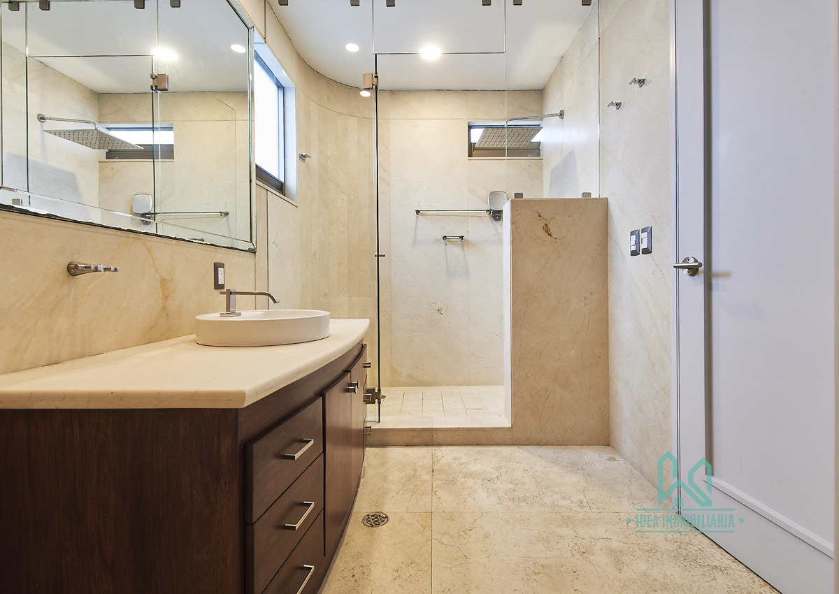 La propiedad destaca por su amplitud, distribución funcional y espacios generosos. Cuenta con tres recámaras, cada una con baño completo, lo que brinda privacidad y comodidad a cada miembro de la familia. Además, tiene un baño de visitas, clóset de blancos y un clóset adicional ideal para guardar maletas o almacenamiento extra.