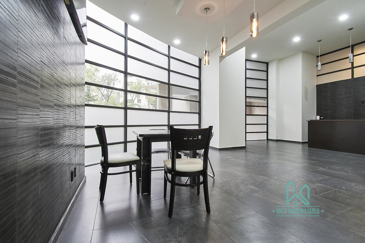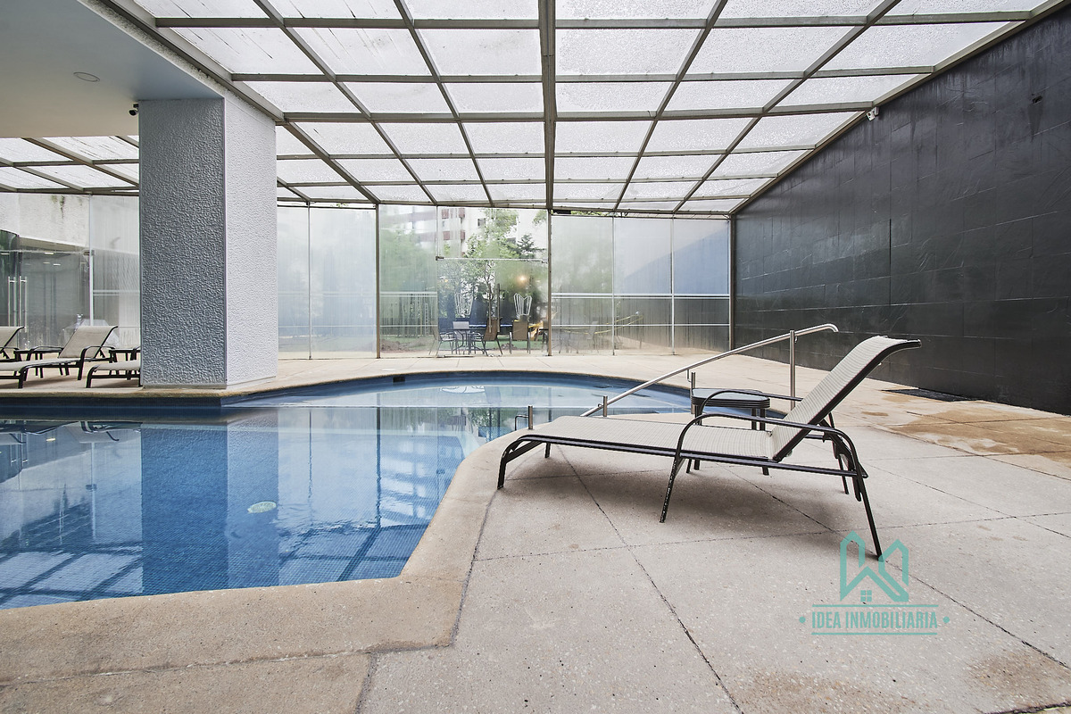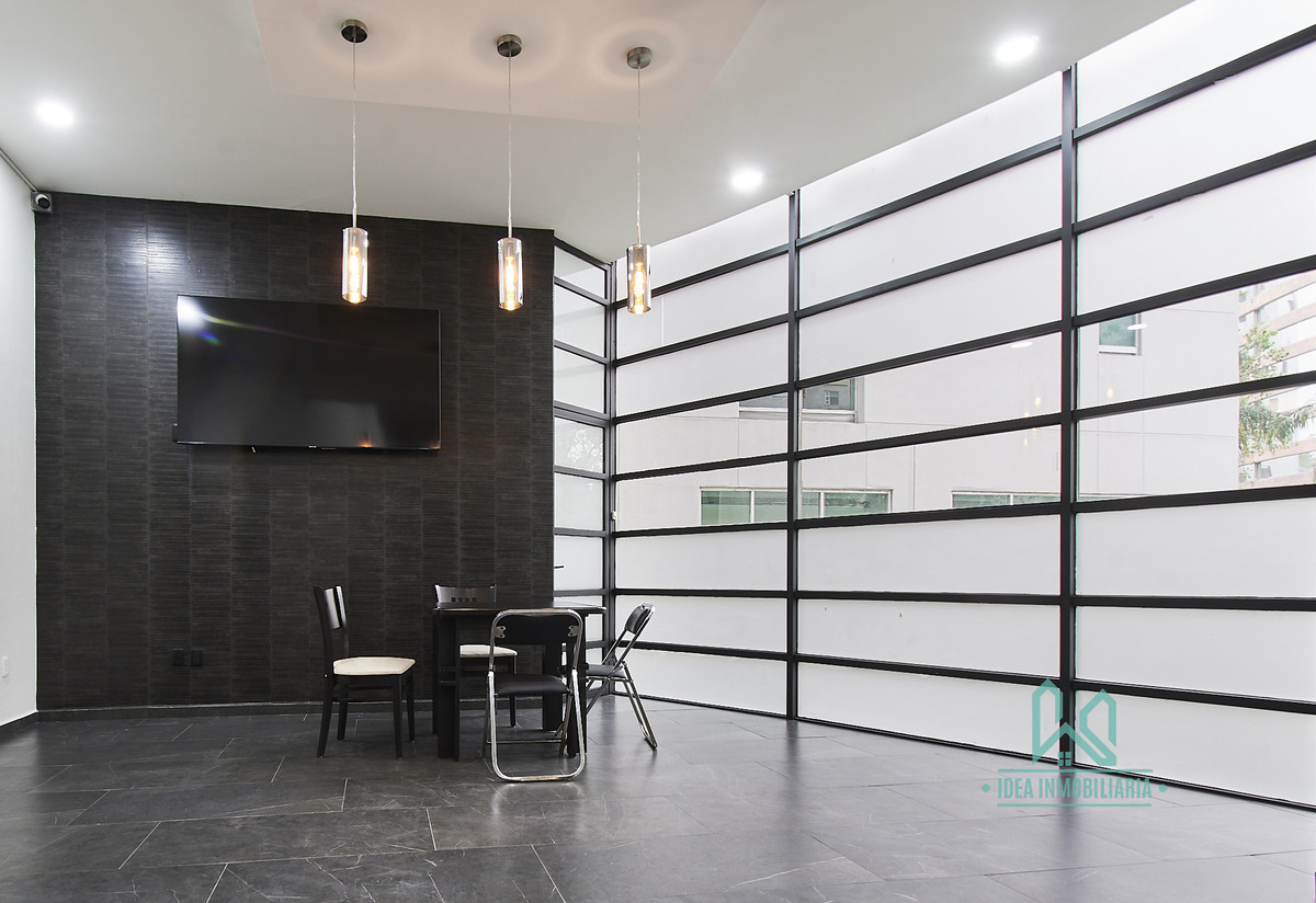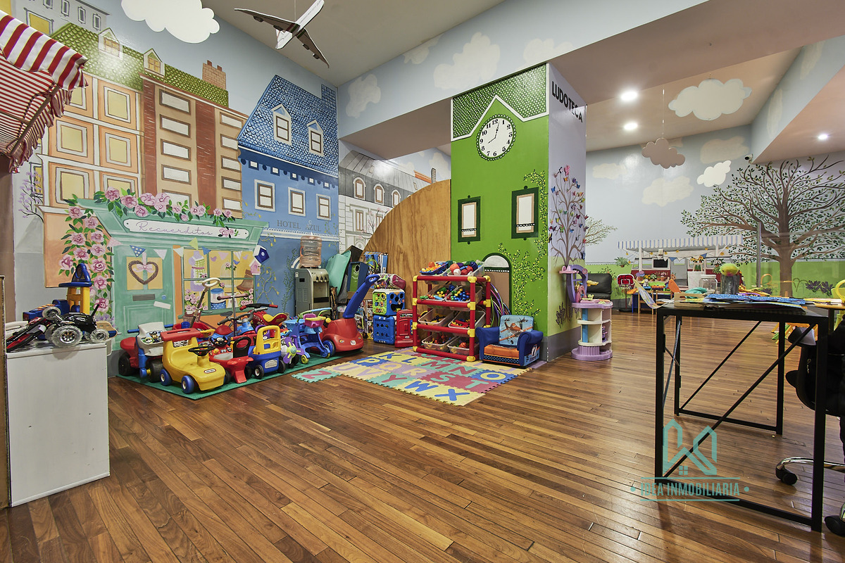 El edificio ofrece excelentes amenidades pensadas para cada miembro de la familia: salón de adultos, gimnasio totalmente equipado, ludoteca para niños, alberca, vapor, salón de eventos y un hermoso jardín con tumbling y juegos infantiles.