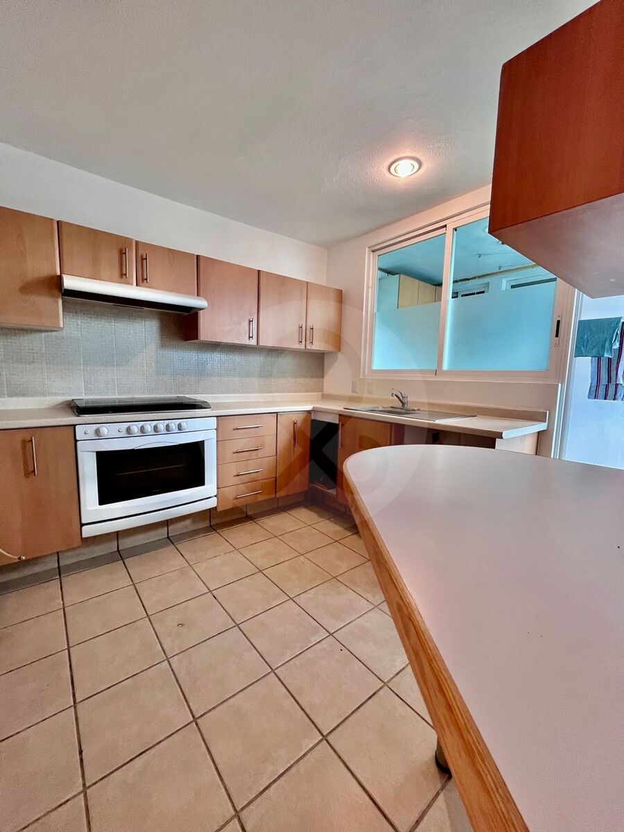 Cocina integral cerrada, con acceso al cuarto de servicio y al patio interior.