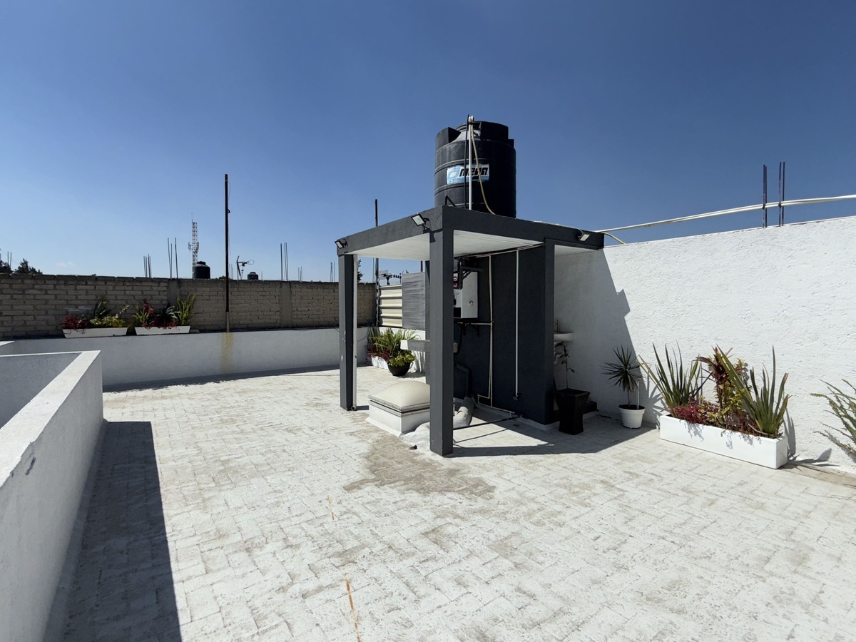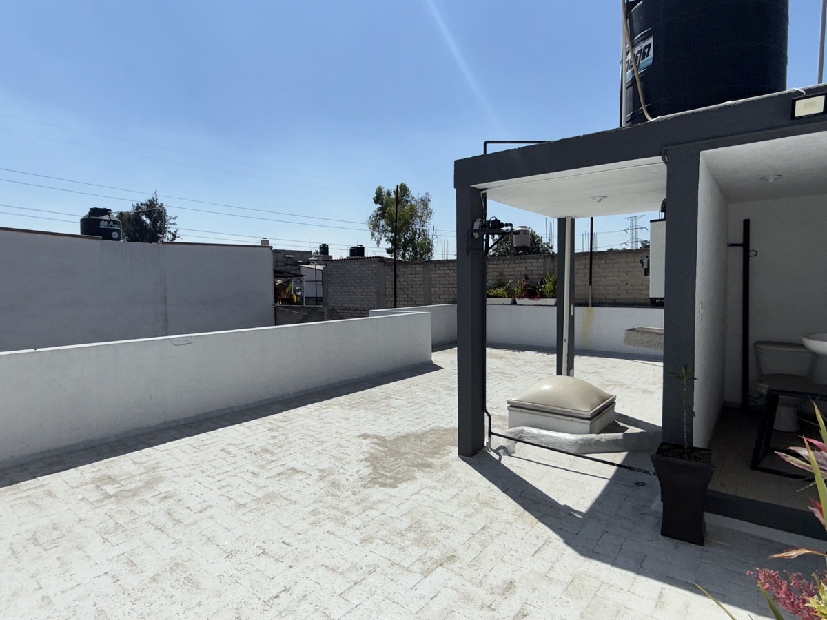 En la entrada: una construcción tipo departamento que incluye sala-comedor, cocina, 2 baños, 1 medio baño, 2 recámaras y una increíble terraza, perfecta para disfrutar momentos agradables con familia o amigos. Ideal para generar ingresos extras, montar una oficina o recibir a tus invitados con total privacidad.