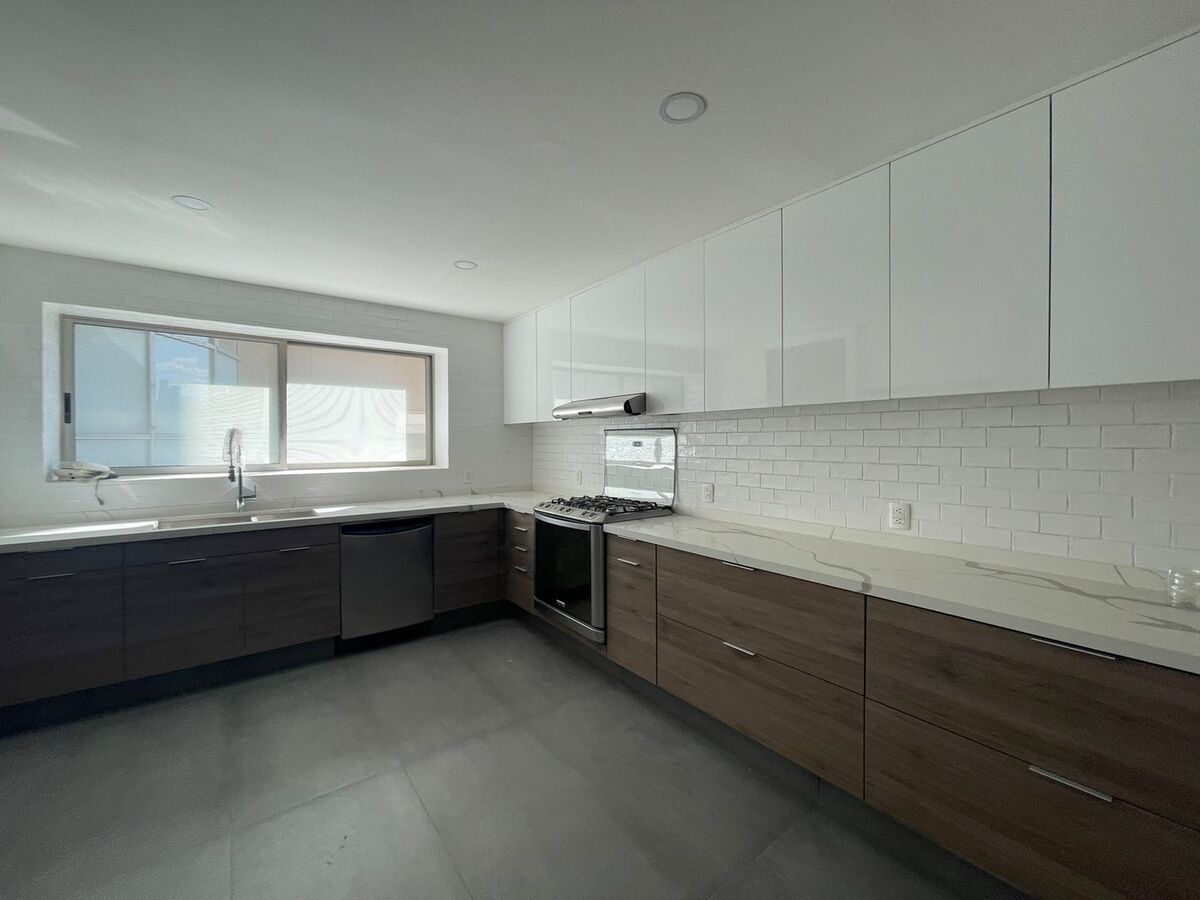 Cocina moderna recién remodelada con grandes espacios de guardado.