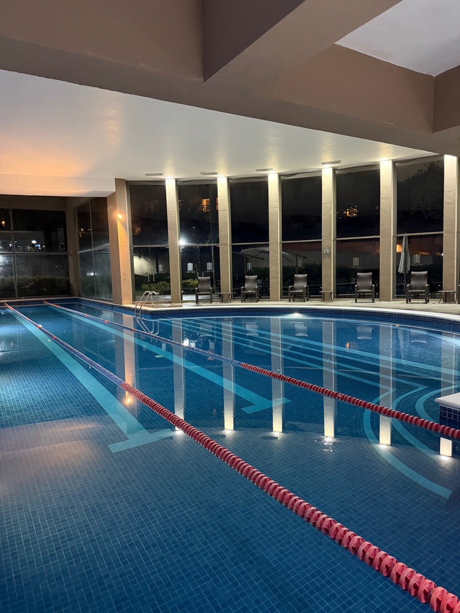 -Alberca semi olimpica techada y climatizada; con area de regaderas y vapor.