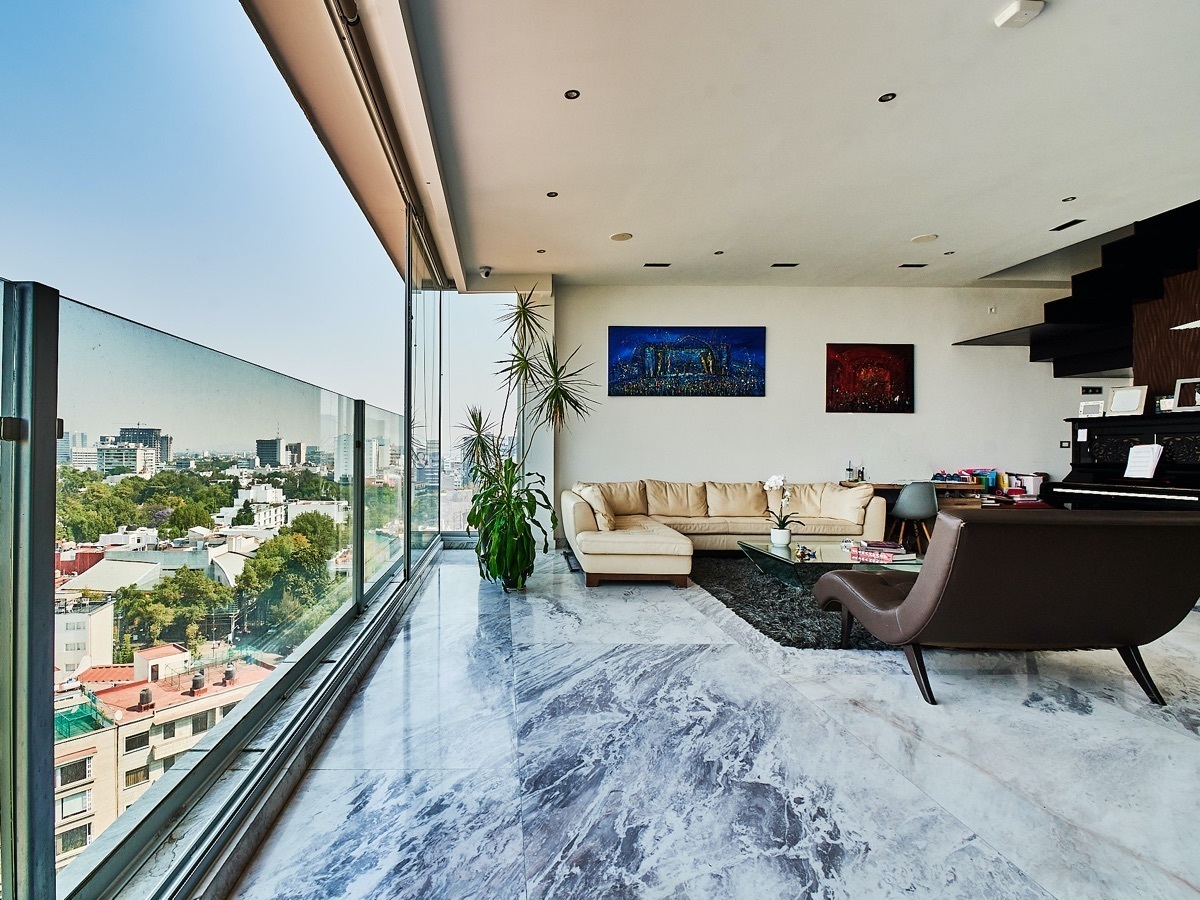 550 M2 in the best area of Polanco, between Campos Eliseos and Masaryk. Ph in Arquimedes with 3 levels and a spectacular view of the city, just steps from Chapultepec Forest, Polanquito, Alencastre, and with all access and exit routes from the area.