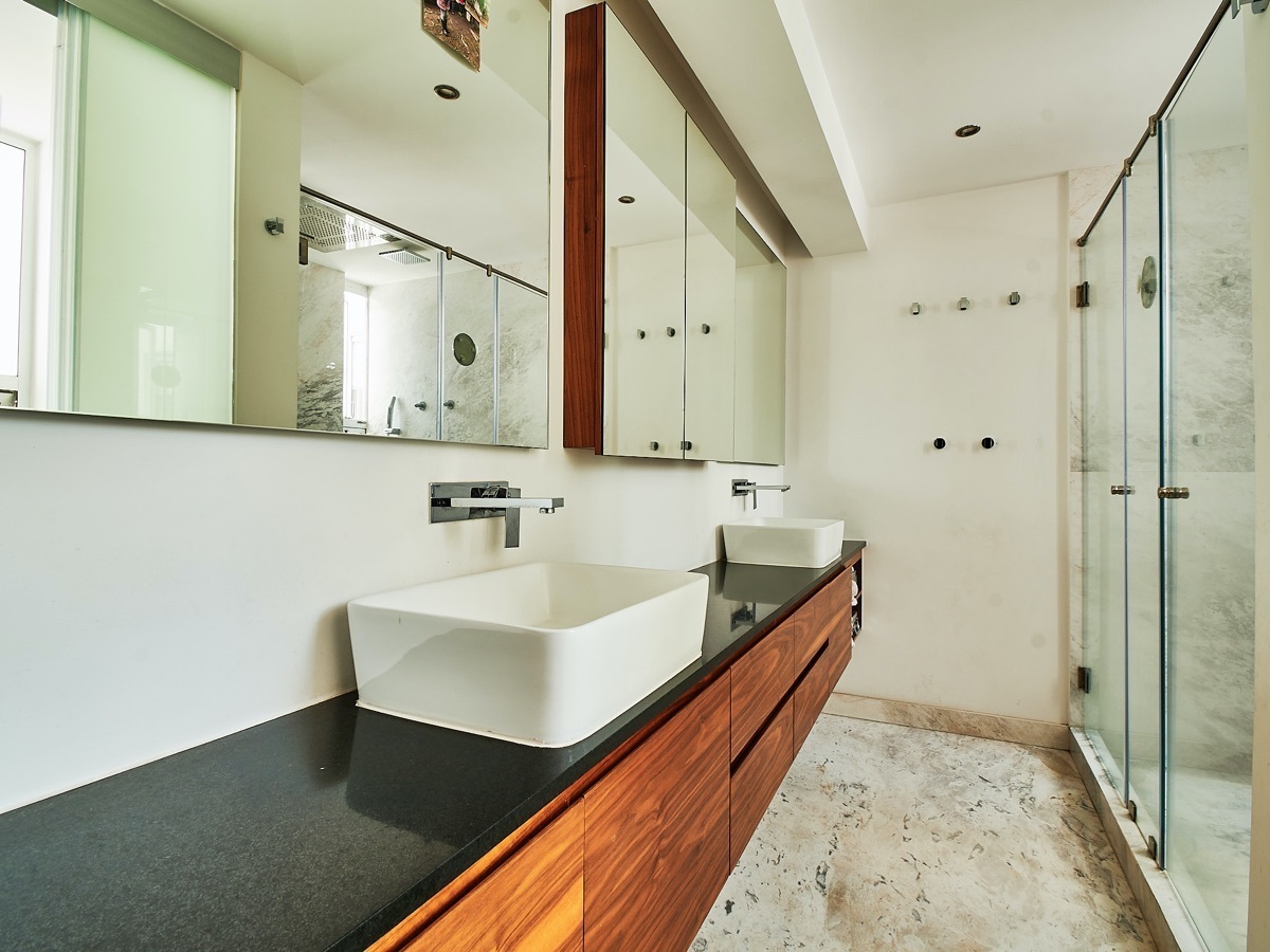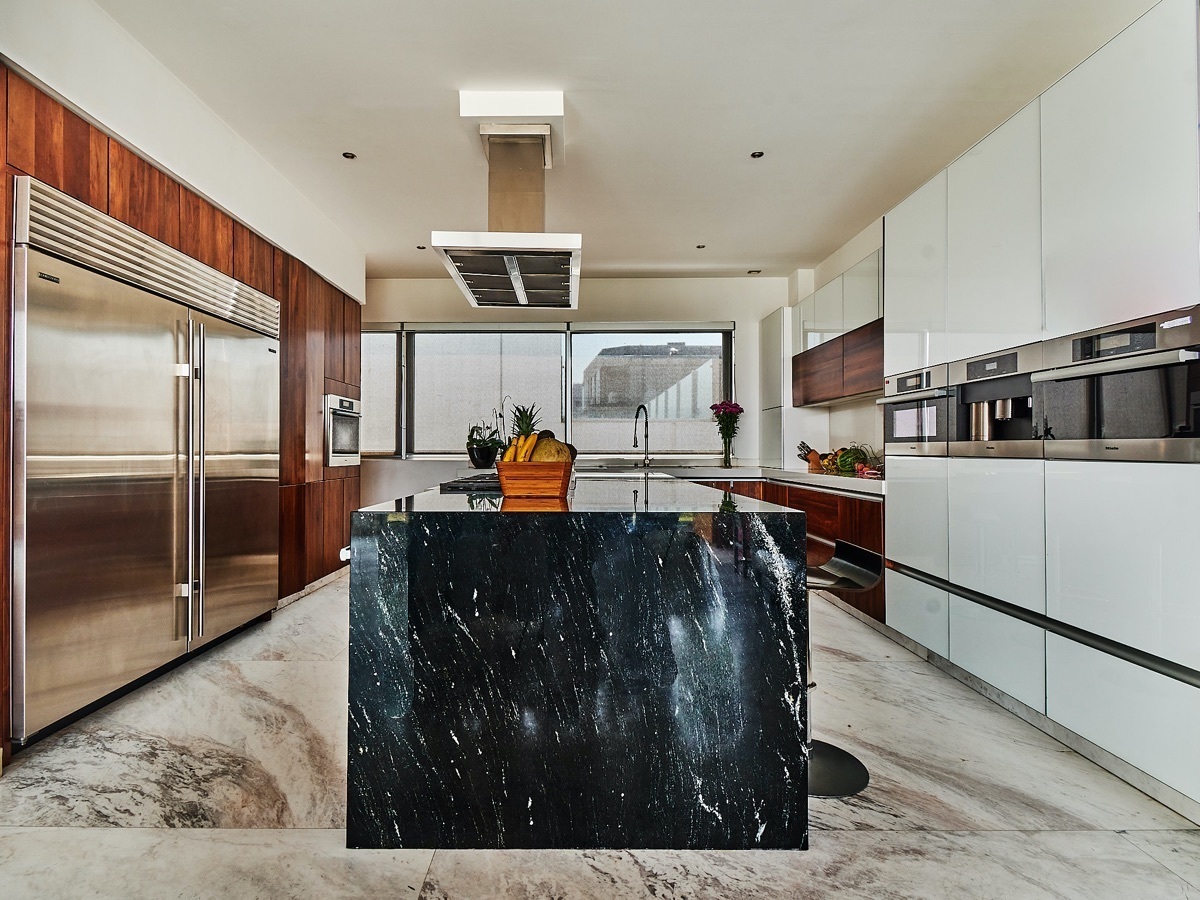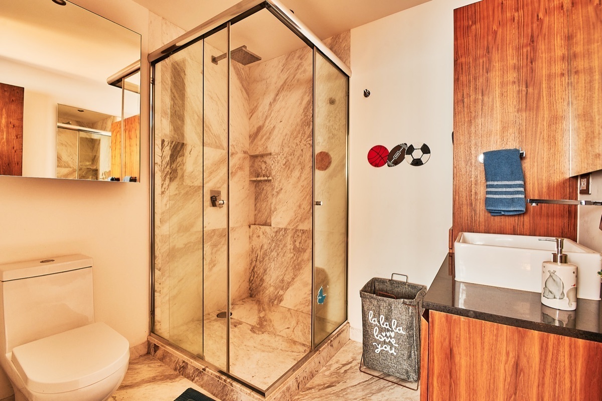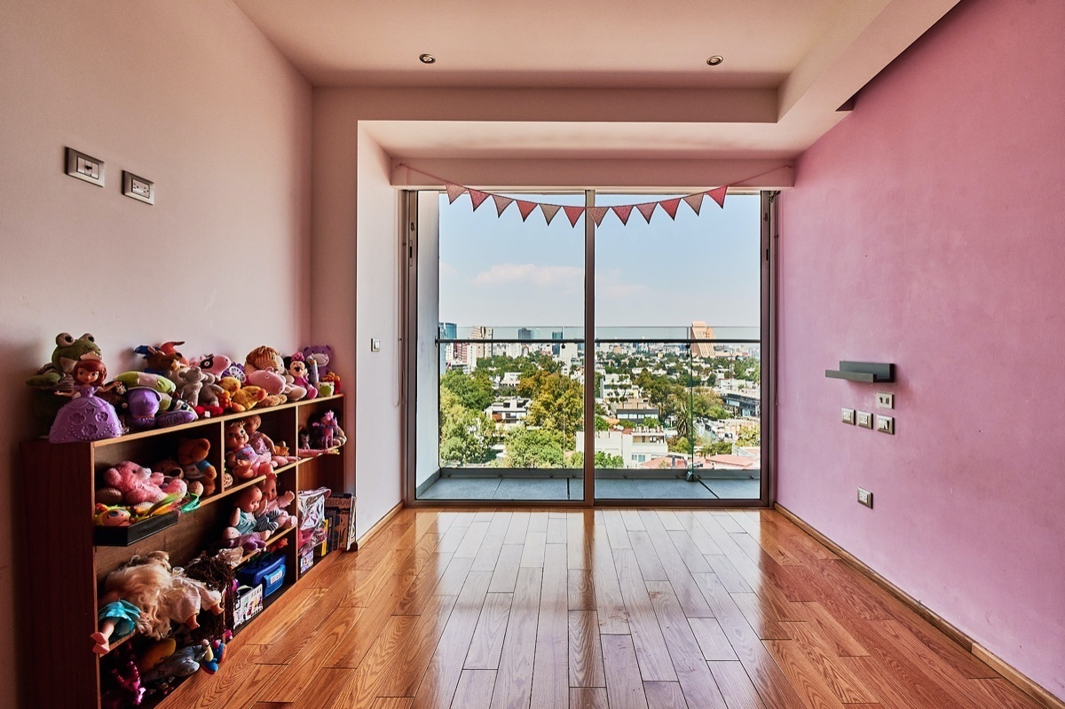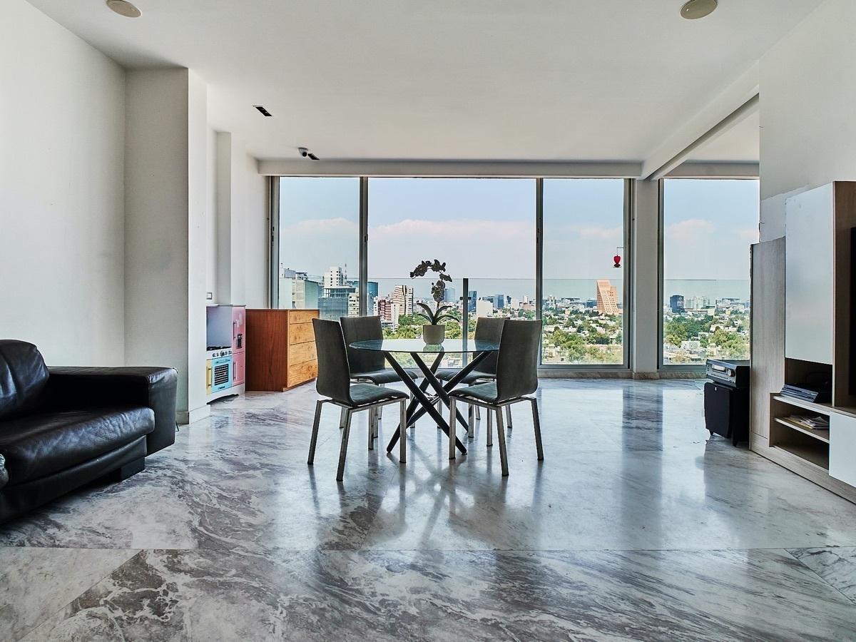 El departamento tiene pisos de mármol en área social y madera en recámaras, acabados de lujo y ventanales de piso a techo lo cual lo hace muy luminoso.