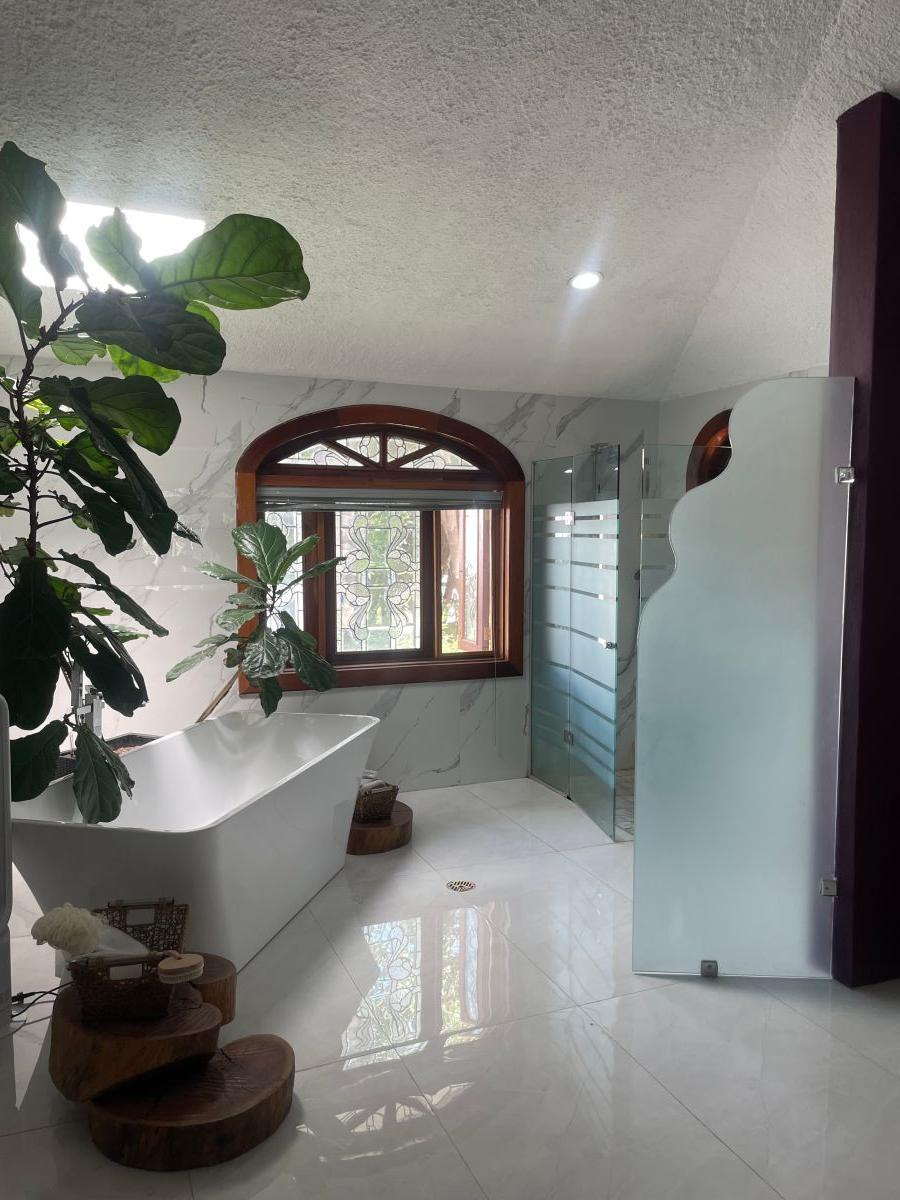 Master Suite: dos vestidores, terraza techada con chimenea de gas y techo motorizado con vidrios inteligentes, segunda terraza abierta y baño con tina