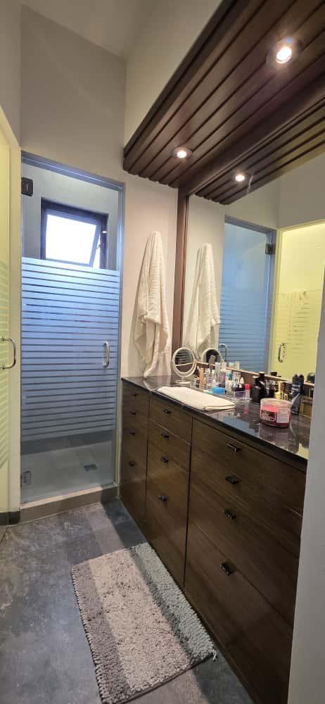 - 3 bedrooms with built-in furniture, each with a bathroom with wooden sinks covered in Mty black marble and its walk-in closet