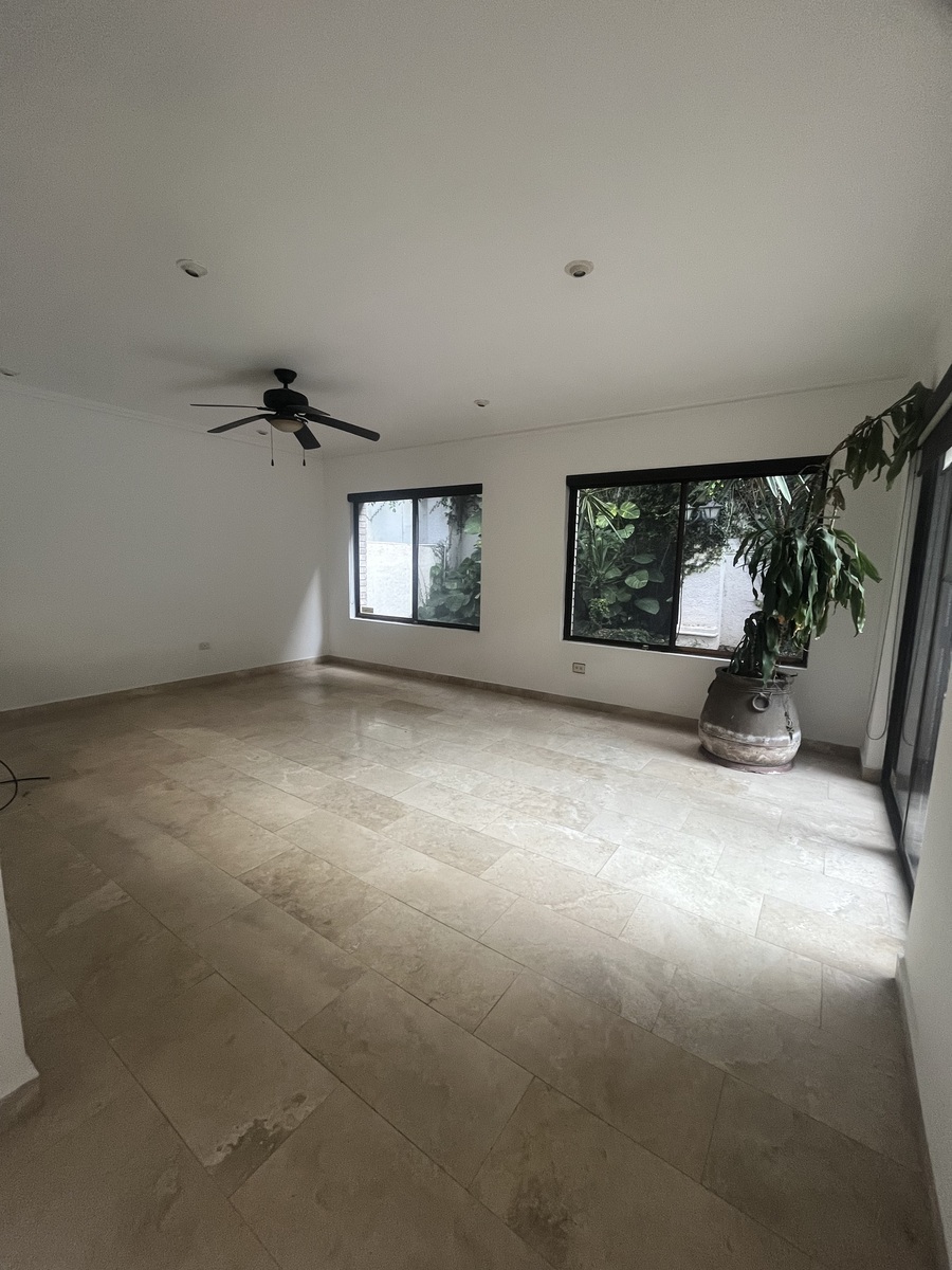 3 recámaras cada una con su clóset, 2 son walkin clóset, baño de visitas, sala, comedor, cocina,ante comedor, Family room, oficina o estudio, patio con asador cuarto de servicio, cochera para 2 carros.
