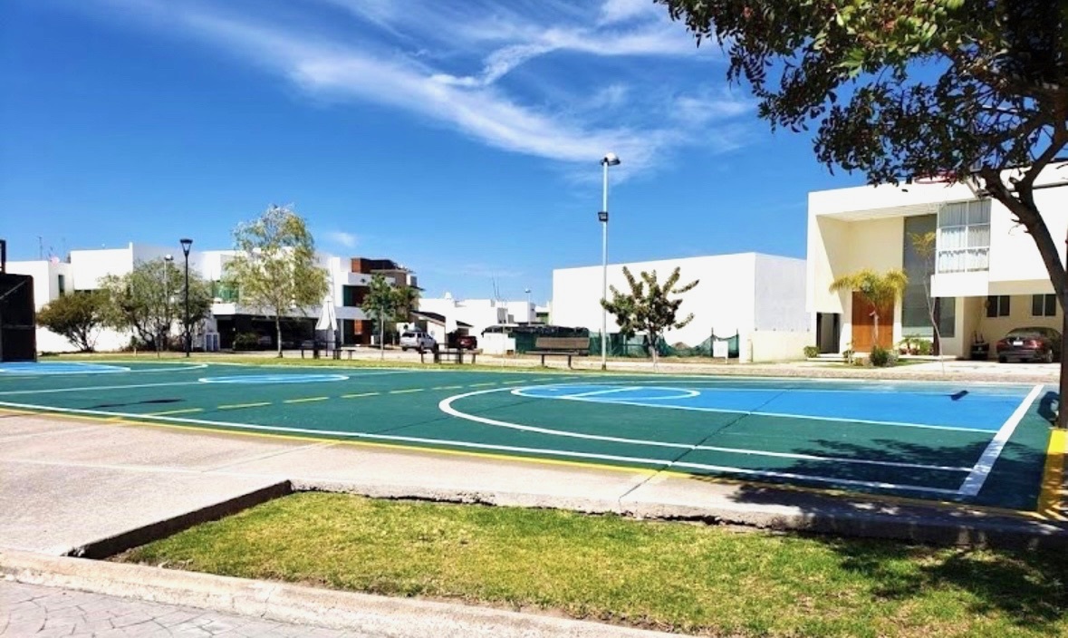El fraccionamiento cuenta con acceso controlado, vigilancia 24 horas, áreas verdes, juegos infantiles, cancha de basketbol y áreas de esparcimiento.