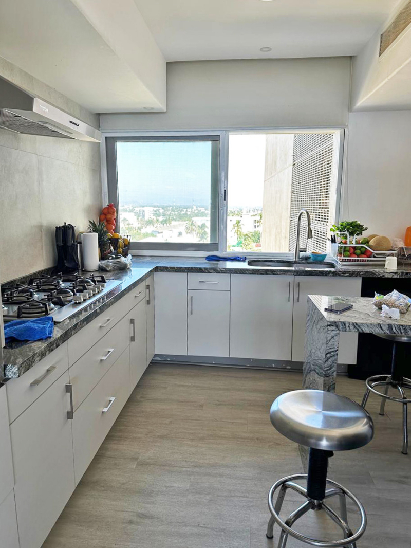 Spectacular apartment on the sixth floor in the best area of Acapulco, completely remodeled and contemporary, this space consists of a living room, dining room, kitchen, laundry area, service room with bathroom, 4 bedrooms with bathrooms, and a large terrace that overlooks the social area and two of the bedrooms.