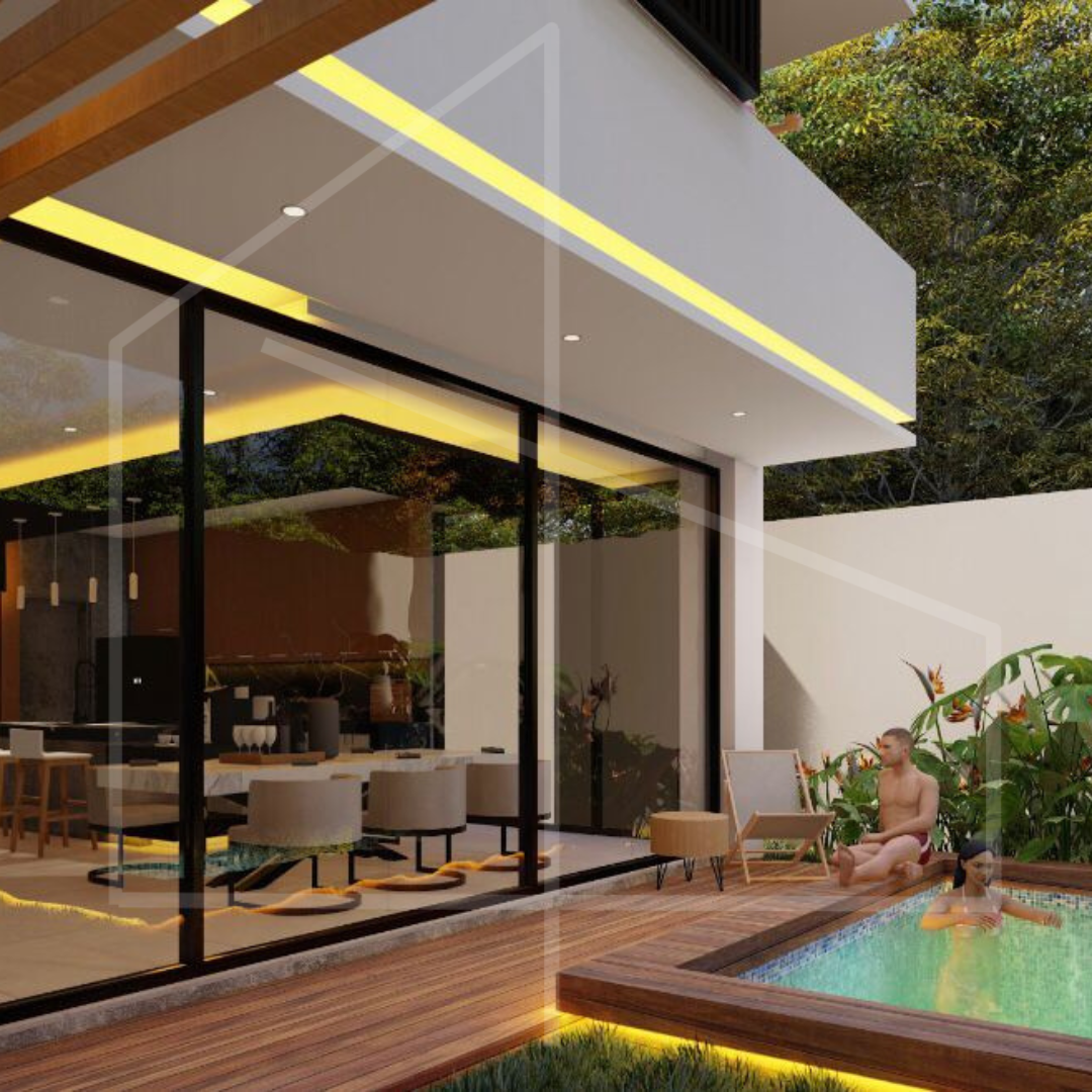 Security is a priority in this residential area, which has 24/7 surveillance, providing peace of mind to residents. This property is ideal for those seeking a modern home in a safe and exclusive environment. Don't miss the opportunity to acquire this magnificent house in pre-sale, a place where every detail has been designed for your comfort and well-being.La casa ofrece un diseño contemporáneo y funcional que se distribuye de manera inteligente. En la planta baja, los residentes disfrutarán de una amplia sala y un luminoso comedor que invitan a la convivencia familiar. La cocina, completamente equipada, se integra de forma armoniosa al espacio, facilitando el día a día. También se incluye un práctico medio baño y un cuarto de servicio con baño completo, proporcionando comodidad y privacidad. Para disfrutar de momentos de relajación, la propiedad cuenta con una hermosa alberca, complementada con un segundo medio baño en el área de la piscina. El estacionamiento tiene capacidad para dos autos, asegurando la conveniencia de sus ocupantes.