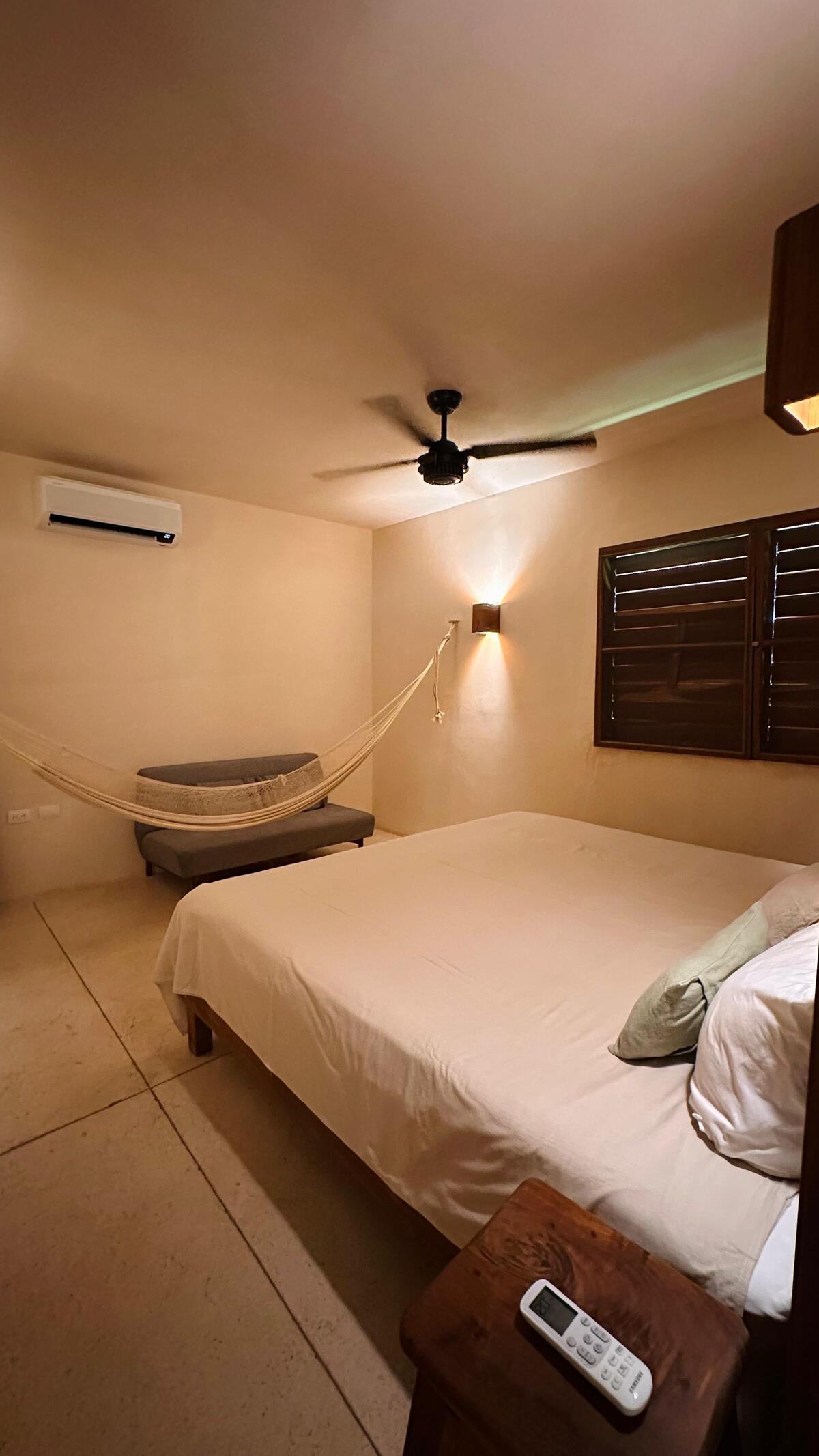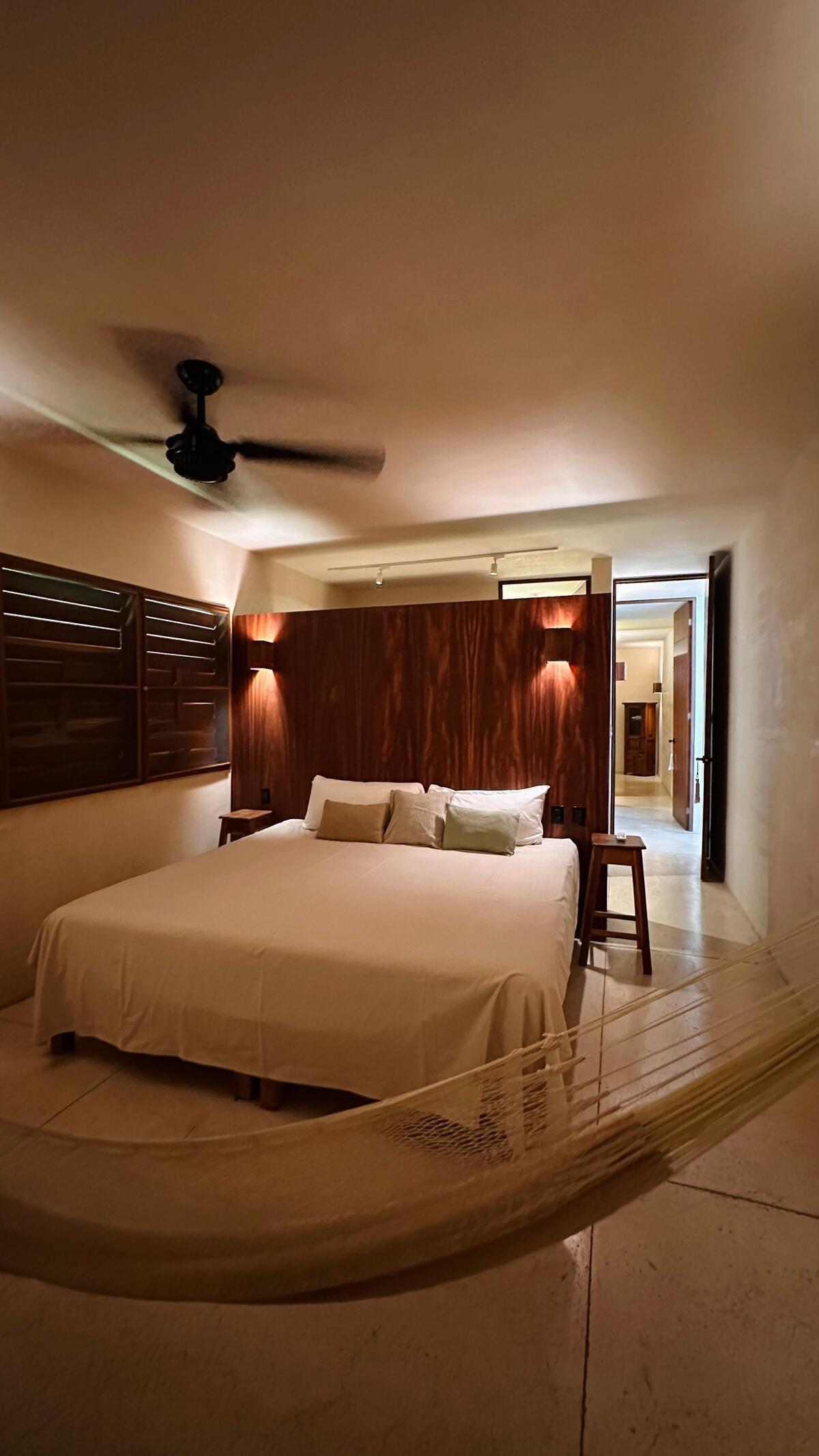 -Recamara en planta baja con vista a la terraza y piscina con su propio baño