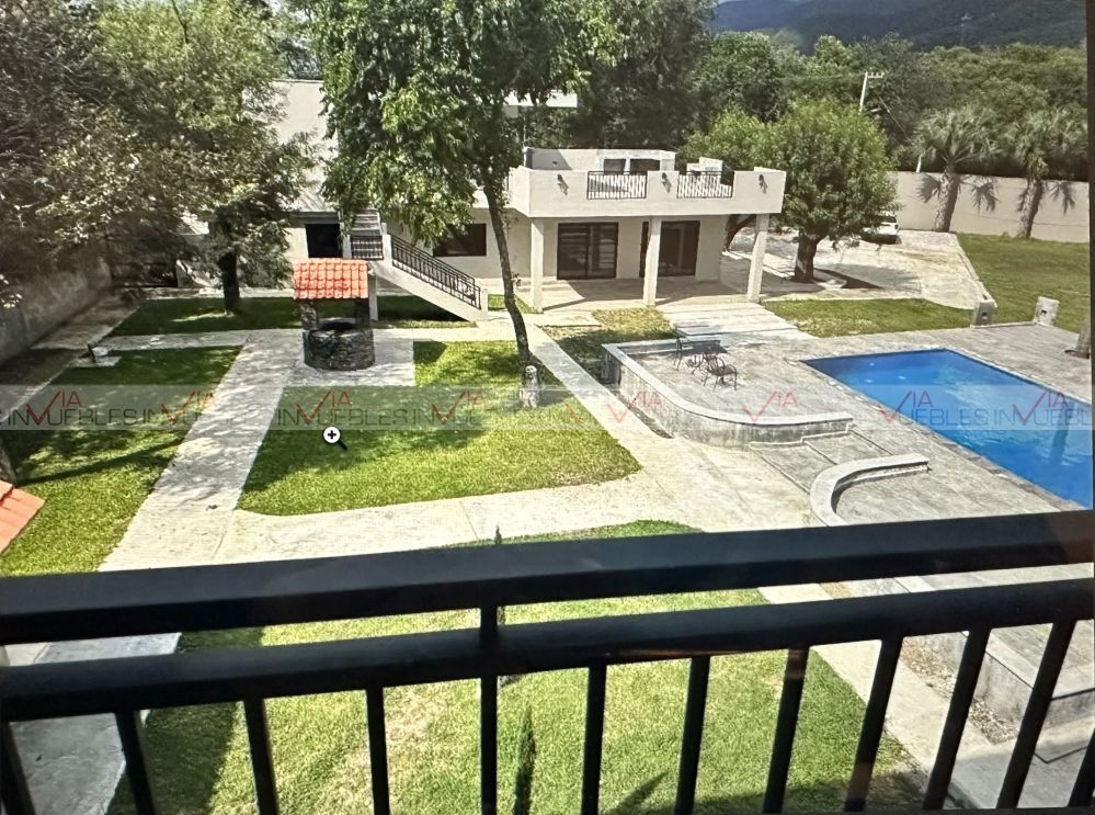 In addition, it has an electric gate, and electricity and water services available. A unique opportunity to enjoy life in a quiet and exclusive environment surrounded by nature, schedule your appointment. Id Gvia: 118865Hermosa quinta campestre en Villa de Santiago, ubicada a 400 mts de la carretera nacional. Cuenta con 3 recamaras, 3 baños completos, 1 medio baño, cuenta con espacio pavimentado para estacionar hasta 10 carros, con 2 plantas, propiedad de 4300m2 de terreno y 500 metros de construcción incluye circuito cerrado, palapa, alberca, jardín, minisplit, terraza, bodega, y más.