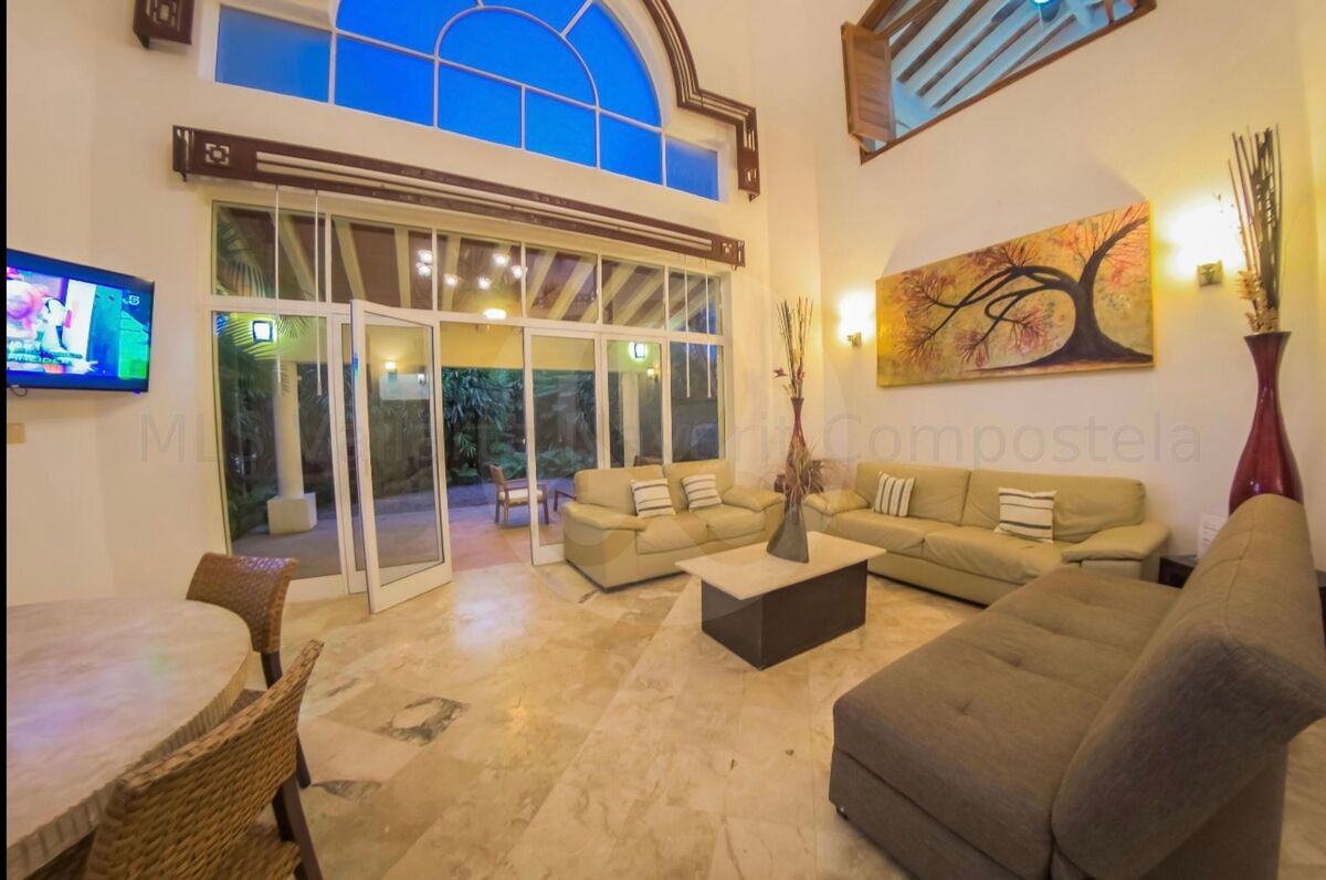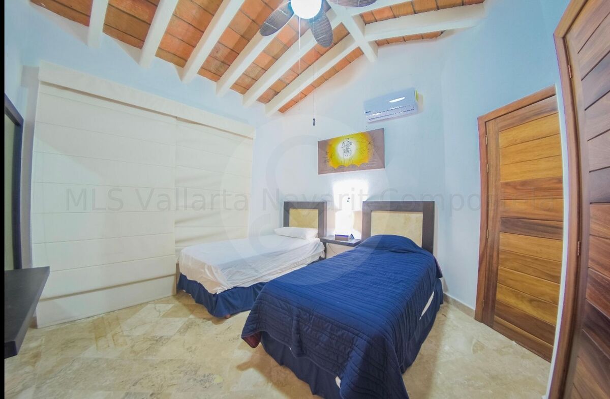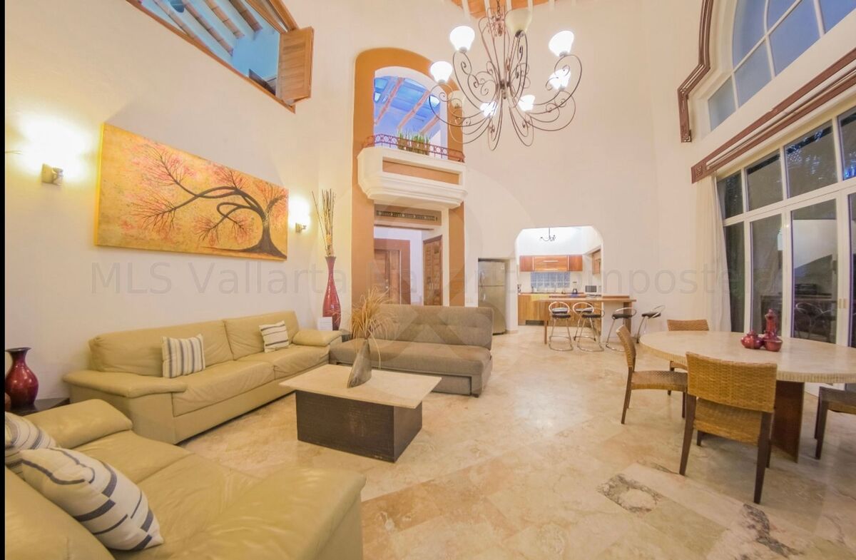 This house is located in a sophisticated community, surrounded by large trees and coconut palms, with beautiful gardens that create an exclusive and relaxing experience. Vallarta Gardens offers a wide range of amenities such as a jacuzzi, spa, beachfront gym, restaurants, bar, 4 pools, beach club, volleyball, picnic area, and 24-hour security.