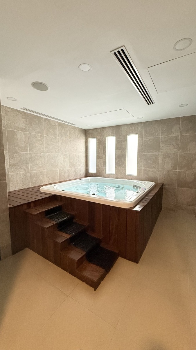 • Clubhouse with pool, outdoor jacuzzi, sunbed area, and bathrooms