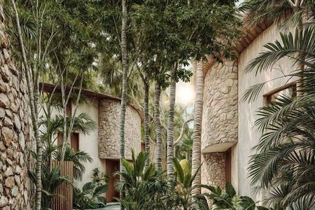 Hermosa Villa en venta en Tulum, terreno de 280m2 de 340m2 muy cerca de Holistika, una zona muy tranquila, completamente independiente, rodeada de balcones, con un amplio jardín y piscina, perfecta para una familia grande, dispuesta de la siguiente manera: