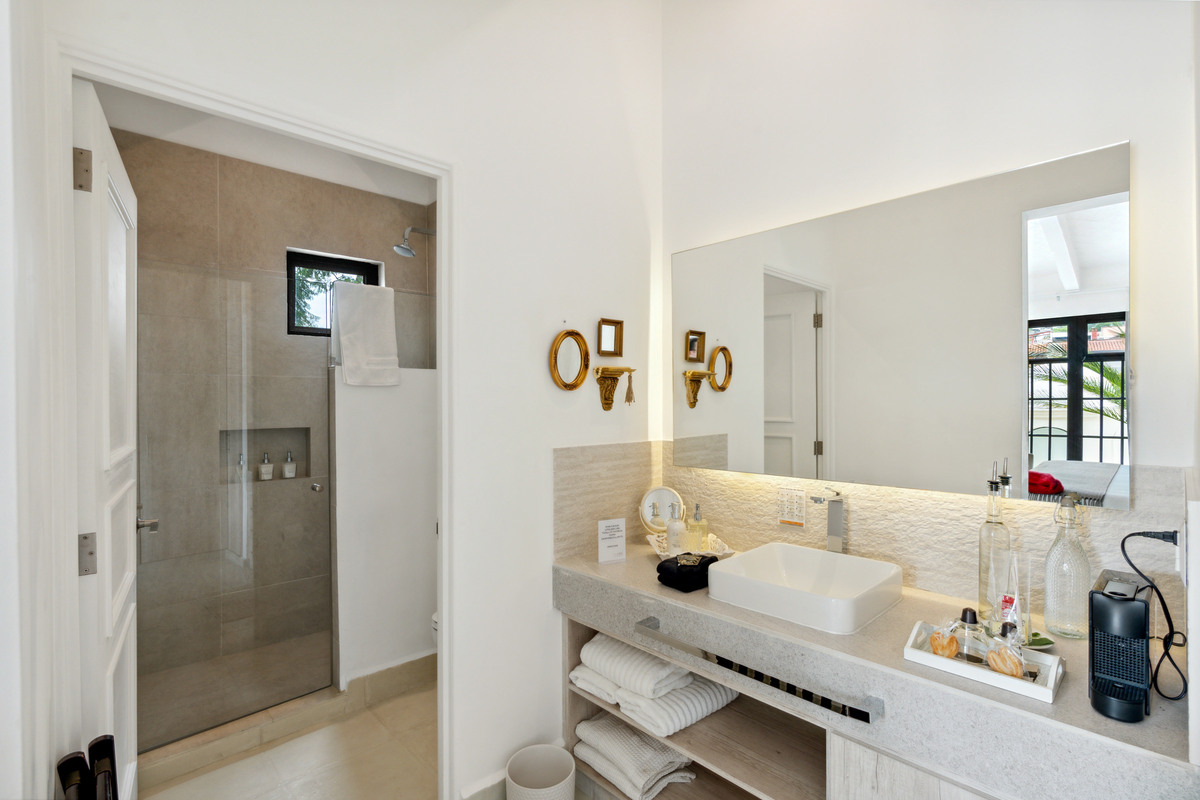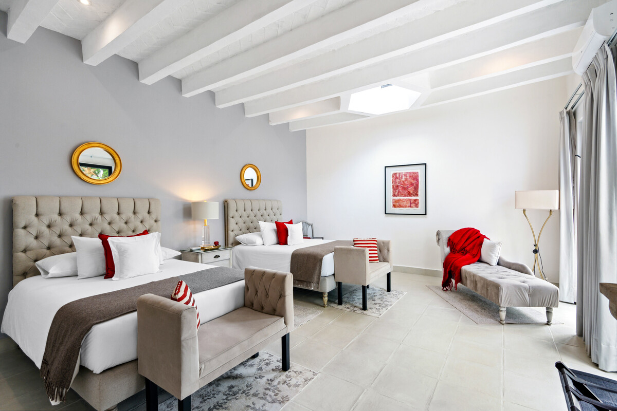 Disfruta de terrazas privadas, 2 salas abiertas al aire libre separadas y un gran patio central, perfectos para la relajación y el entretenimiento. La villa ofrece alojamientos de lujo con impresionantes vistas de la icónica Parroquia desde varios puntos de la propiedad.