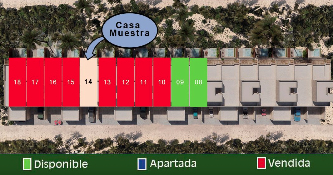 18 villas de 3 habitaciones, pensadas a detalle para que tu y tú familia puedan disfrutar de vivir frente al mar con todas las comodidades.