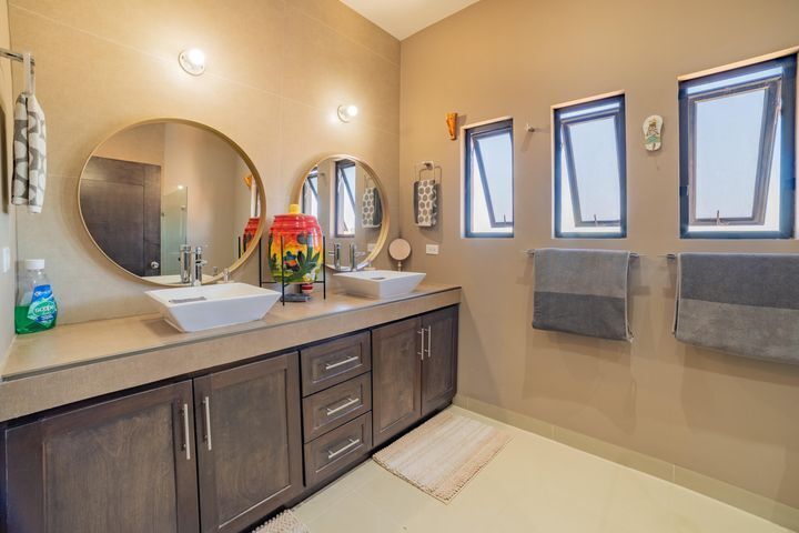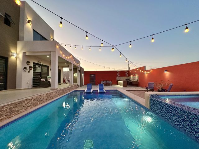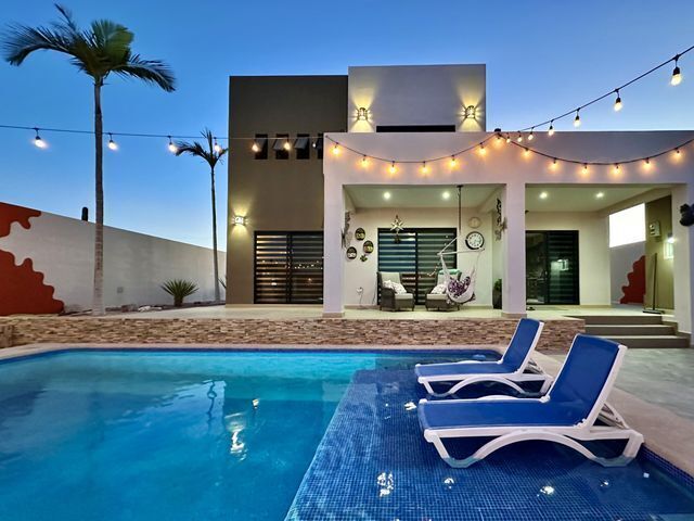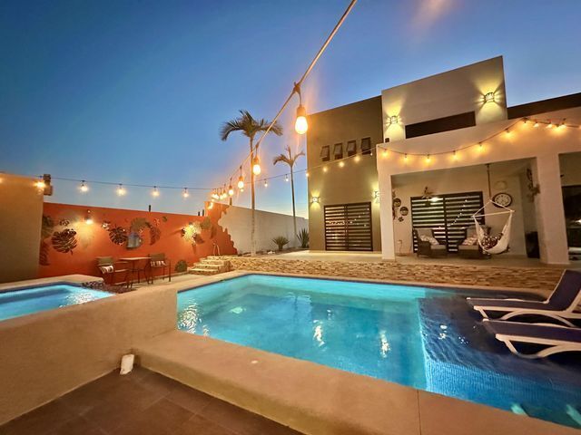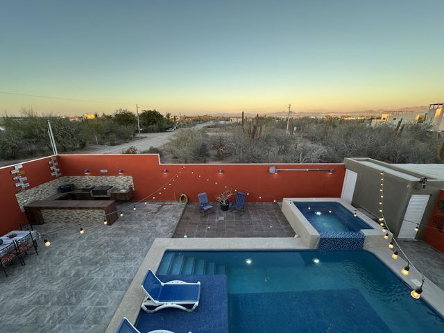 Welcome to ''Vista Bahia Linda,'' a stunning two-story home in El Centenario, BCS, Mexico, where breathtaking sunrise views of the Bay of La Paz and the city skyline greet you daily. This 3-bedroom, 4.5-bathroom residence offers a luxurious lifestyle with a vast pool, an enormous, chef-inspired kitchen, and extensive outdoor space perfect for entertaining or future expansion. Nestled in a tranquil, countryside setting, this fully-compounded property provides serenity, stargazing nights, and ample parking. Enjoy convenient access to Walmart, Home Depot, pristine beaches, and vibrant downtown La Paz, just 15 minutes away. Discover the epitome of peaceful living paired with urban proximity. Schedule your viewing today—this gem won't last long!