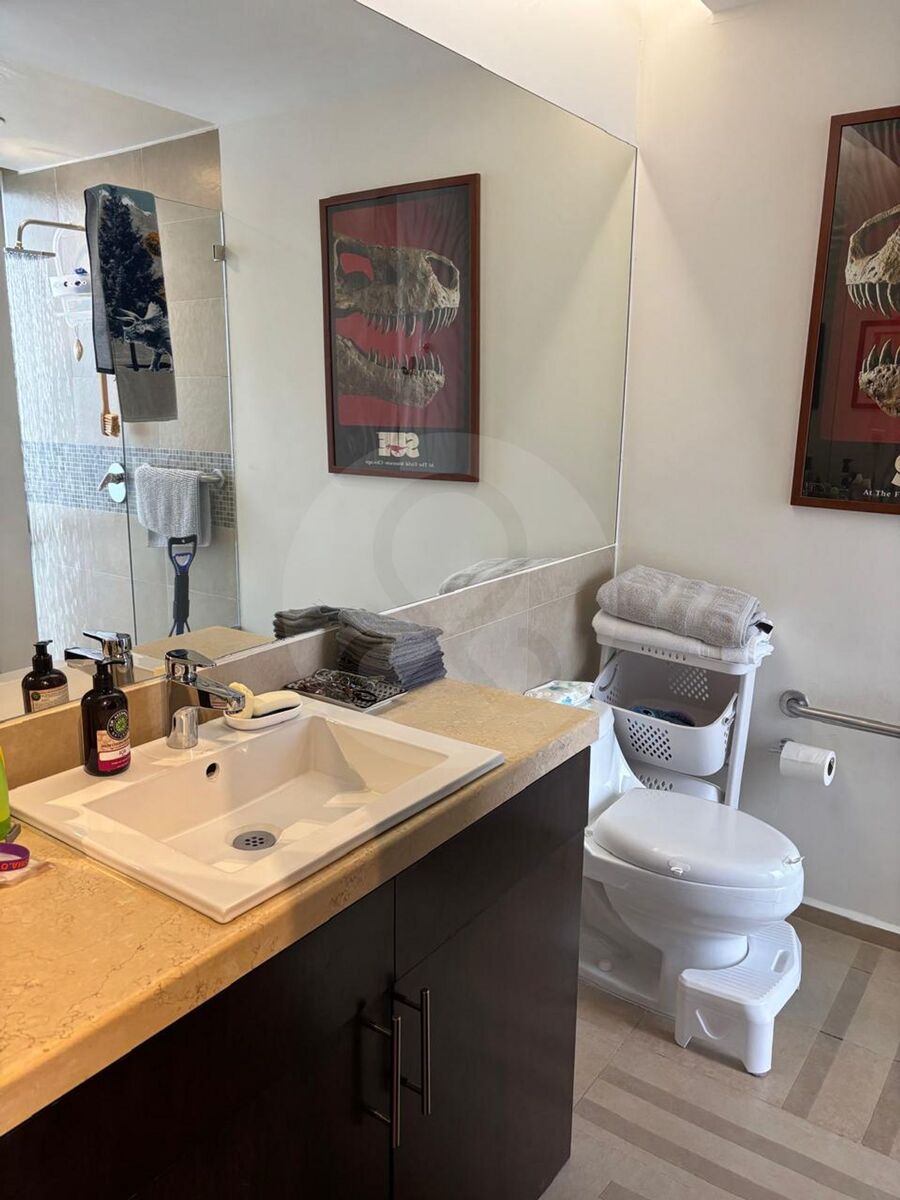 La recámara principal es un verdadero refugio: amplia, luminosa, con walk-in closet, baño completo y un balcón privado con vistas de ensueño. Las dos recámaras secundarias cuentan con clóset y baño, una de ellas con balcón propio. El cuarto de servicio fue adaptado como family room, y el departamento incluye área de lavado.
