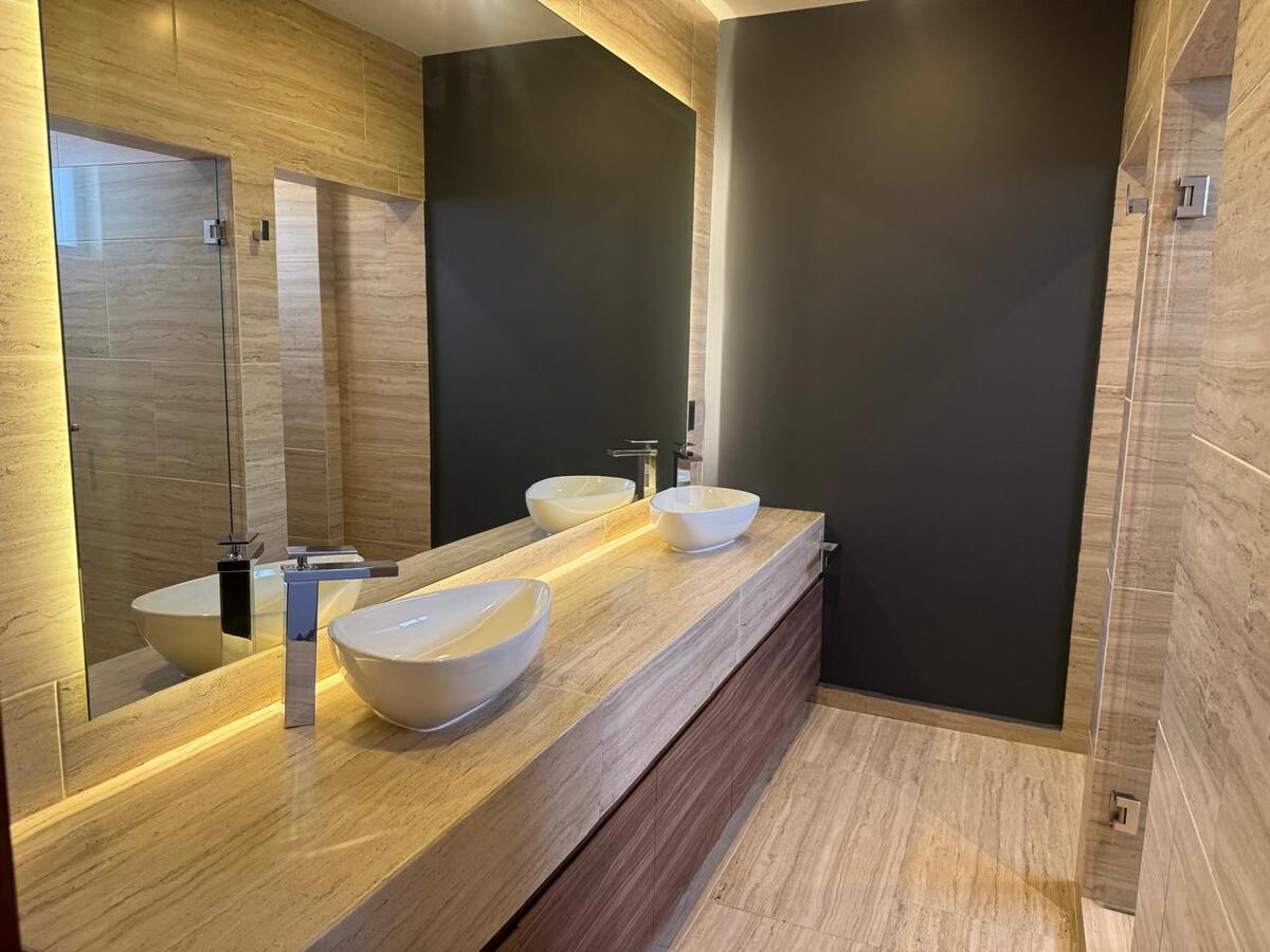 En la planta baja, disfrutarás de una amplia sala y comedor con acceso a un jardín y un patio de gran tamaño. La cocina, de concepto abierto, es muy amplia y cuenta con su propia alacena. También dispone de cuarto de servicio y área de lavandería.