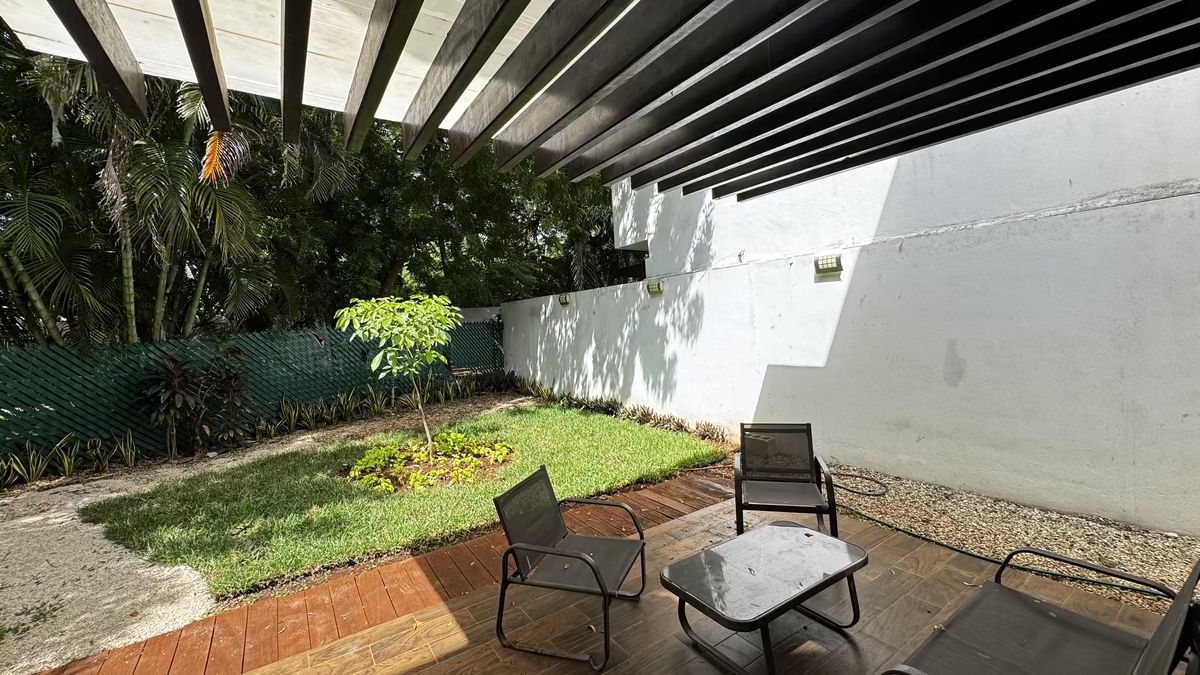 Áreas exteriores y amenidades: El patio trasero está conectado directamente con las áreas comunes de la privada a través de una puerta, facilitando el acceso a las amenidades.