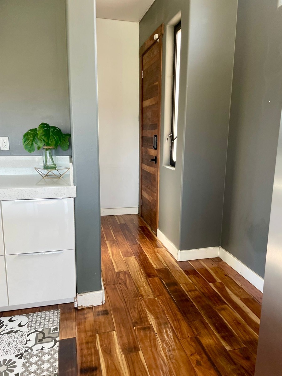 Al ingresar, te recibe un acogedor vestĂbulo que conduce a un cuarto de TV o habitaciĂłn para huĂ©spedes, acompañado de un baño completo en planta baja.