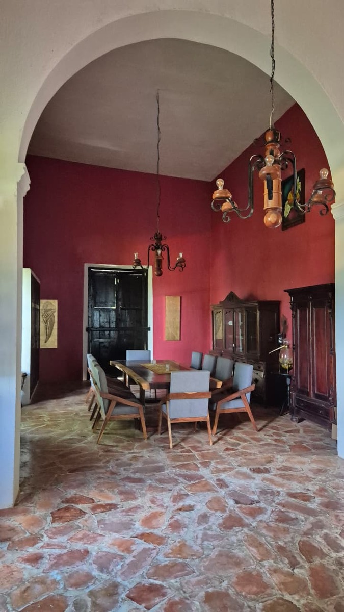 El vendedor pide $17,500,000 pesos. Su acceso a esta residencia única es a lo largo de una calle arbolada en un pueblo a solo 40 minutos del periférico de Mérida. Primero, notará que encontrará un estacionamiento vehicular cerrado con capacidad para más de 10 vehículos. A continuación, la entrada peatonal es por una escalera de piedra a un gran patio con césped que se extiende por todo el ancho de la propiedad a lo largo de la carretera. ¡La fachada de esta hacienda restaurada es bastante espectacular desde esta vista! Esta propiedad única cuenta con 10 habitaciones con baño privado distribuidas en la propiedad de 1, 31 y 34.09 hectáreas. La suite principal se encuentra dentro de la antigua estructura de la hacienda y cuenta con puertas de madera originales, además de una suite adicional en el segundo nivel. La cocina es al aire libre y ofrece fantásticas vistas de la propiedad. Varias terrazas y áreas de conversación rodean una gran piscina. Caminos rústicos de piedra serpentean por toda la propiedad que conducen a habitaciones de invitados decoradas de forma única en viviendas separadas. No se pierda la estructura de eventos de dos pisos rodeada por un gran lago artificial. Disfrute de las múltiples fuentes, estanques de koi y canales de riego alimentados por su noria de agua dulce, antiguamente bombeada por el molino de viento que aún se mantiene en pie. También encontrará numerosos rincones privados de meditación en estos cuidados jardines con árboles frutales tropicales maduros. ¡Esta propiedad es ideal para todos los estilos de vida y disfruta de la naturaleza en un entorno natural!