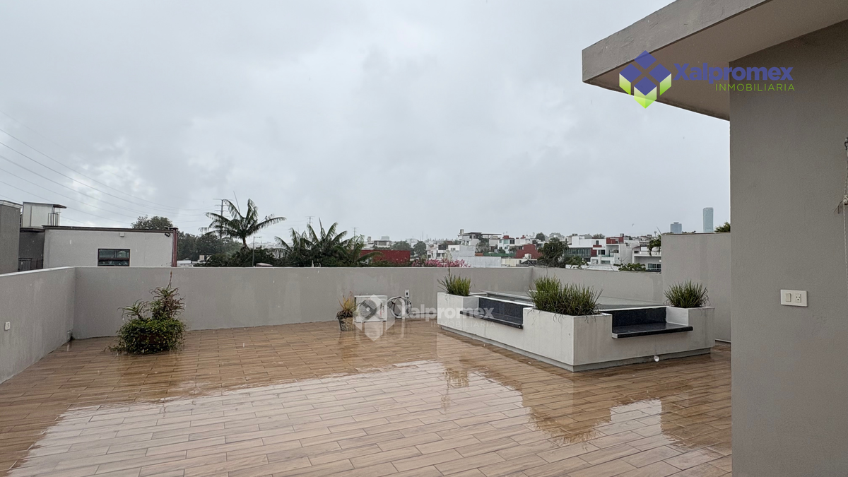 Cuenta con recámara en planta baja, sala de TV, área social, cuarto de servicio y roof garden. En total son 4 recámaras todas climatizadas, con vestidor y baño completo.