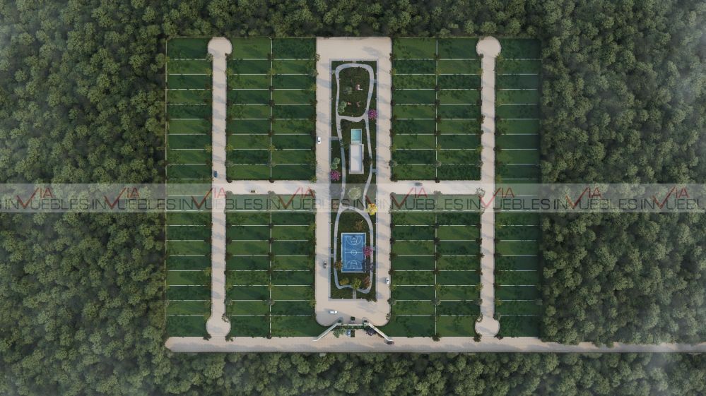 Residential lots in Mérida, which will feature perimeter walls, sidewalks, natural markers, facade, access control, white streets, and smart lighting. 110 residential lots with 5,152 m² of green areas. Average lot size from 290 m² to 397.79 m².