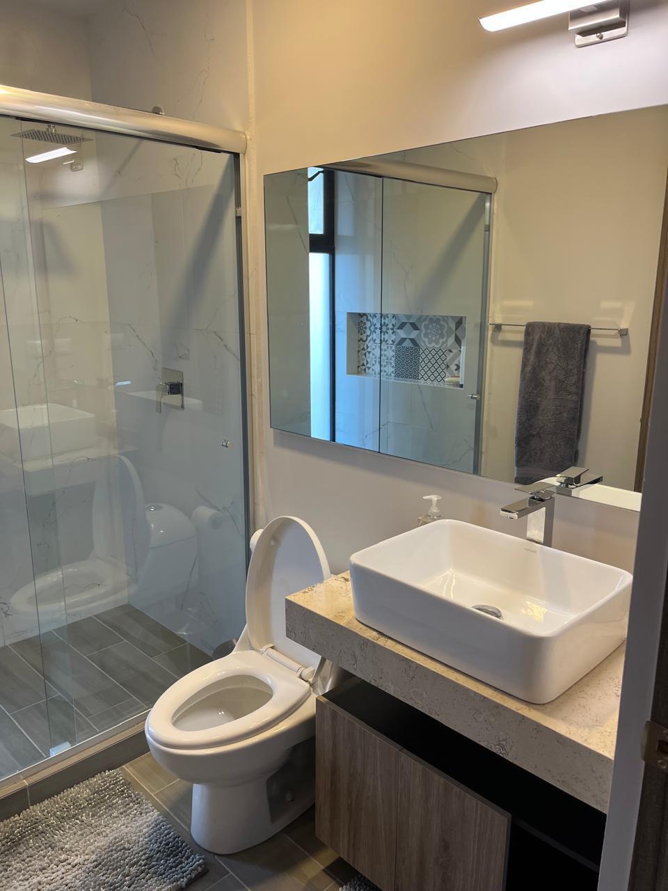 📌 Sala – Comedor con excelente iluminación natural 📌 Cocina integral equipada con cubierta, back splash y barra de granito. Mobiliario distinto al original de gran calidad. 📌 Estufa, Horno y Campana de Techo. Doble tarja